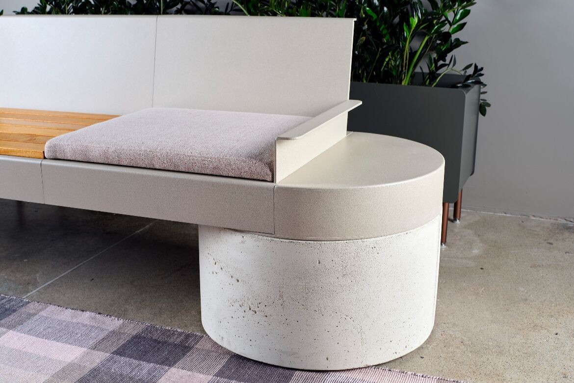 Engineered for the rigours of the public realm, the collection’s structural integrity signals an enduring commitment to heavy use in high-traffic spaces, yet this monolithic design reveals a delightful degree of flexibility. CoALL’s simple expression can be enriched with the warmth of plantation-grown timber battens, softened with durable upholstery and enlivened with matt gestures of powder-coated colour, adding layers of personality to how this seemingly rigid design relates to the spaces it occupies. This dynamism is further enhanced by the seating’s intuitive composition – the collection comprises a range of elements that can be curated into a variety of bespoke formations and adapted over time. This, in turn, brings lasting relevance to CoALL’s elementary volumes and positions it as a placemaking design for enduring spaces that can and should be shared by everyone.