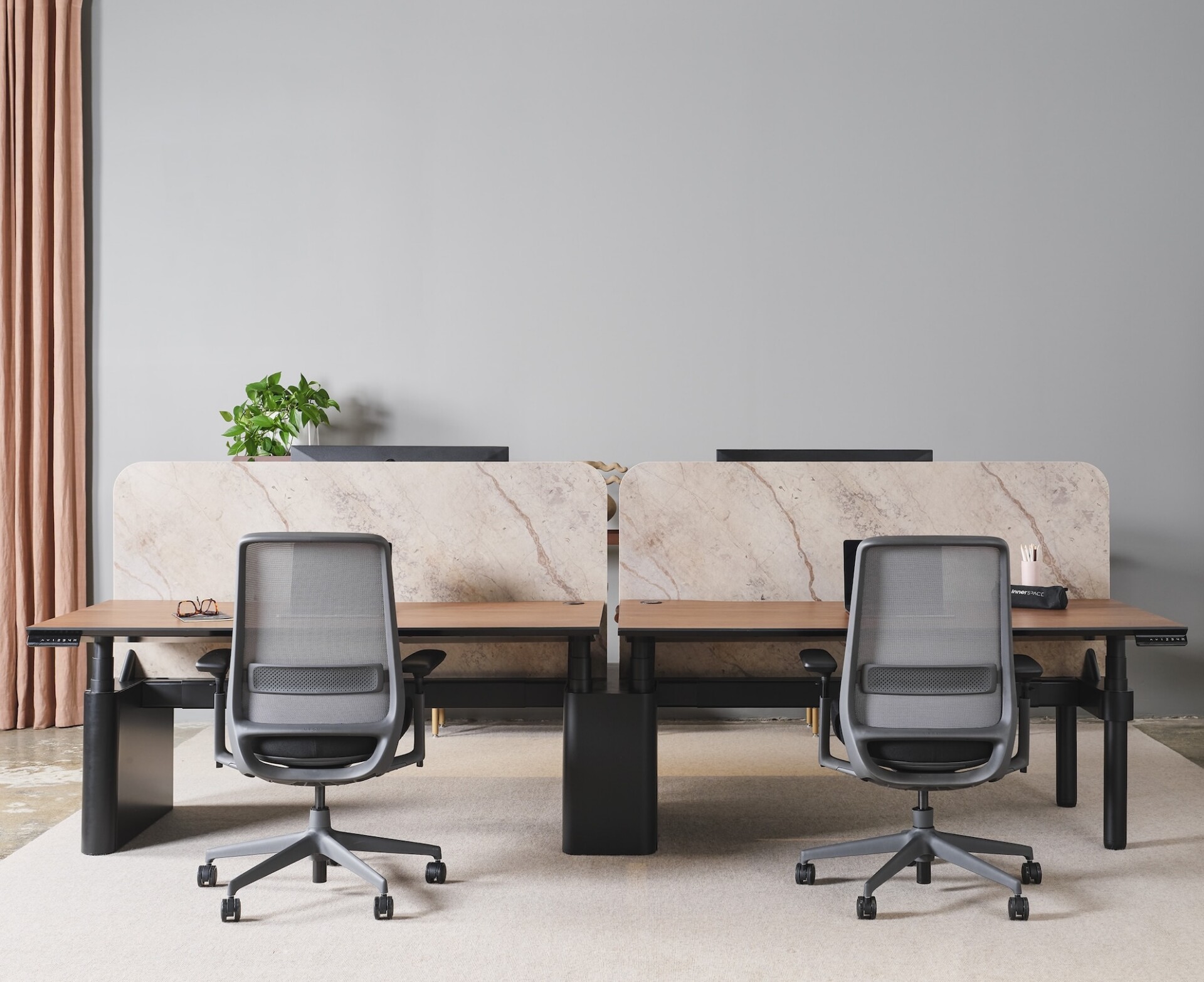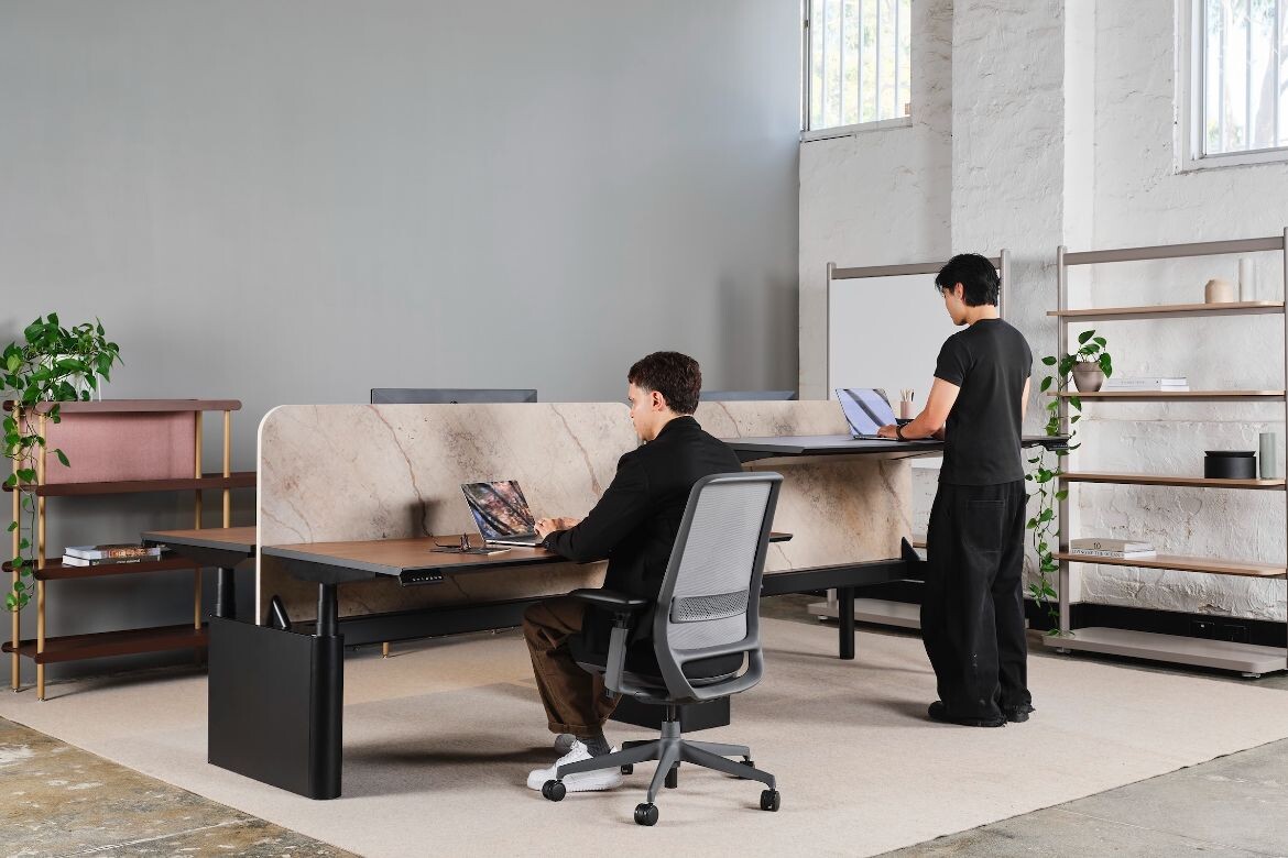 Much like CoALL, DuO Too also provides designers and end users with outstanding adaptability. With a sit-to-stand capability and flexible configurations, including back-to-back and side-by-side workstations or single desks, DuO Too is designed to cater to a variety of work styles and tailored layouts, and to evolve and scale alongside them.