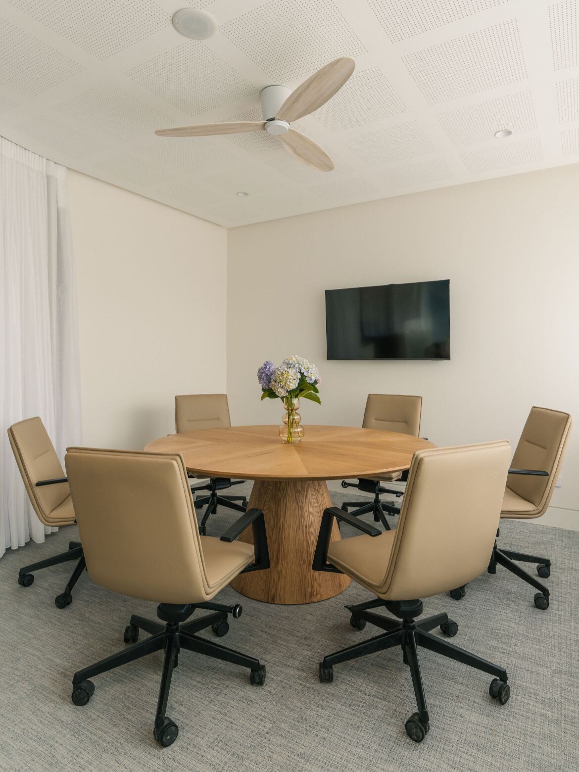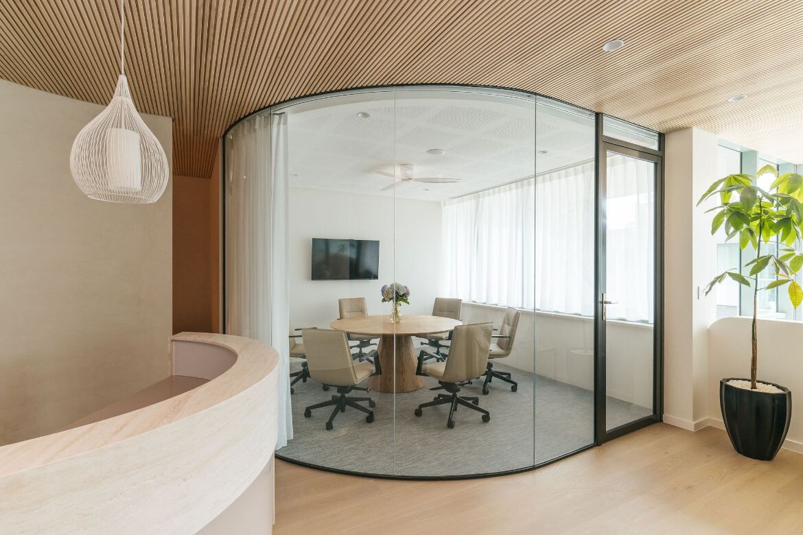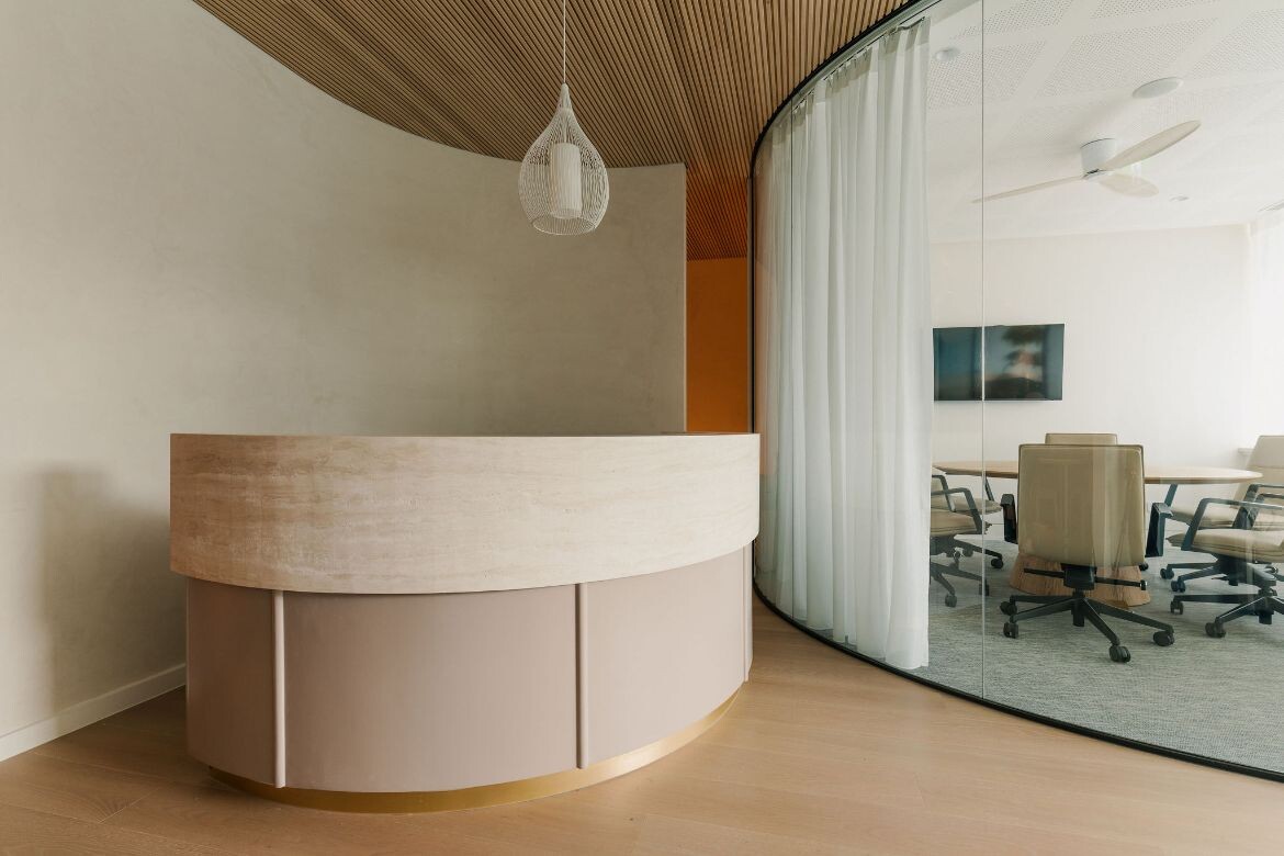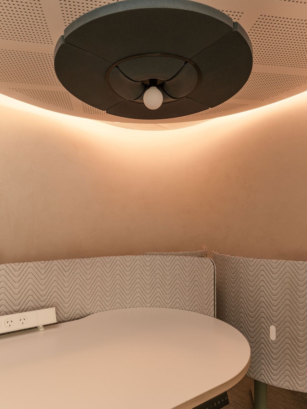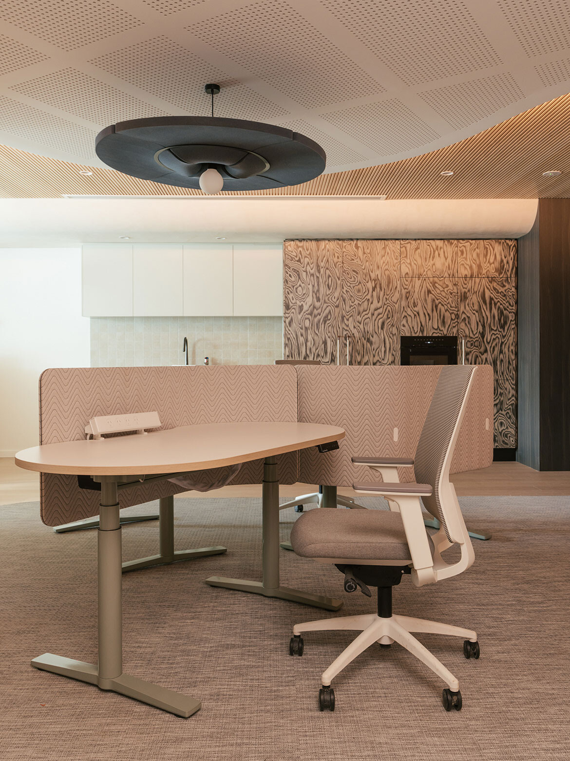 Lighting plays a quiet but critical role. Acoustic pendant lights soften the visual field while enhancing comfort, reinforcing the project’s nexus between performance and poise. Throughout the office, curves, edges and transitions are carefully resolved, giving the space a sense of composure and continuity.
