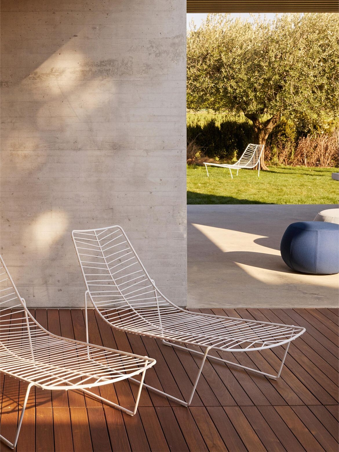 Leaf by Lievore Altherr Molina keeps its crisp, branch-like geometry while upgrading the fundamentals for long-term outdoor use. Powder-coated steel frames resist corrosion and colour fade, and new removable cushions fully wrap the seat and back with draining foam and secure crossties so rain moves through, and drying is faster. The chaise returns with a gentler inclination and a sculpted cushion for head-to-knee support, and the stool is re-proportioned for better comfort. The tables now use stone-effect HPL tops that feel tactile, read natural and need no tablecloth. The best features of the Leaf Collection remain – stackable chairs, two table heights and versatility from lounge to dining. Leaf moves easily from pool decks to café terraces to breakout courtyards.