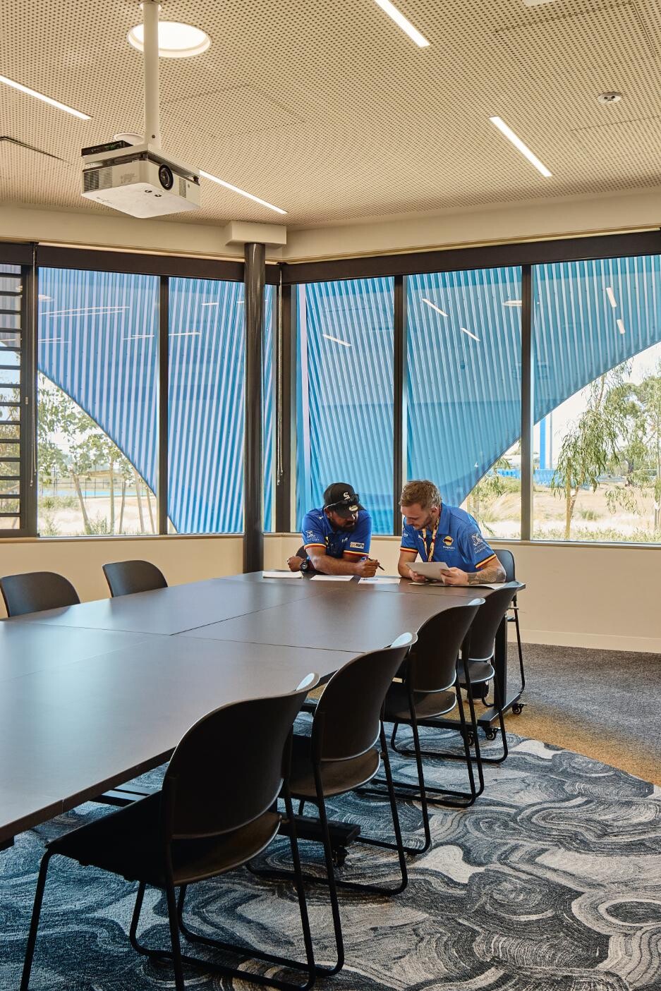 This balance between creative freedom and technical precision sits at the heart of the Milliken Couture process. PrintWorks™ technology can operate across vastly different scales and design languages, blending colour exactly, scaling pattern and texture without losing detail – as evident in the brushstrokes that remain visible in the flooring of the Munarra Centre for Regional Excellence. “Everyone was amazed at how well their images were interpreted,” says Wilson. “The earthiness and texture of the carpet tiles made their work dance.”