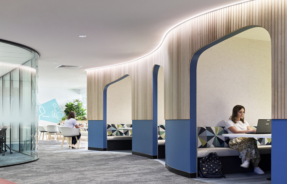 “All existing spaces across the college’s three levels were reconfigured and reimagined. Covering 2360m² in total, this included classrooms, student break out and study spaces, public amenities, staff areas and meeting rooms, open plan offices, and tea/kitchen areas,” explained Brooke Proctor, PDT Architects’ Senior Interior Designer.