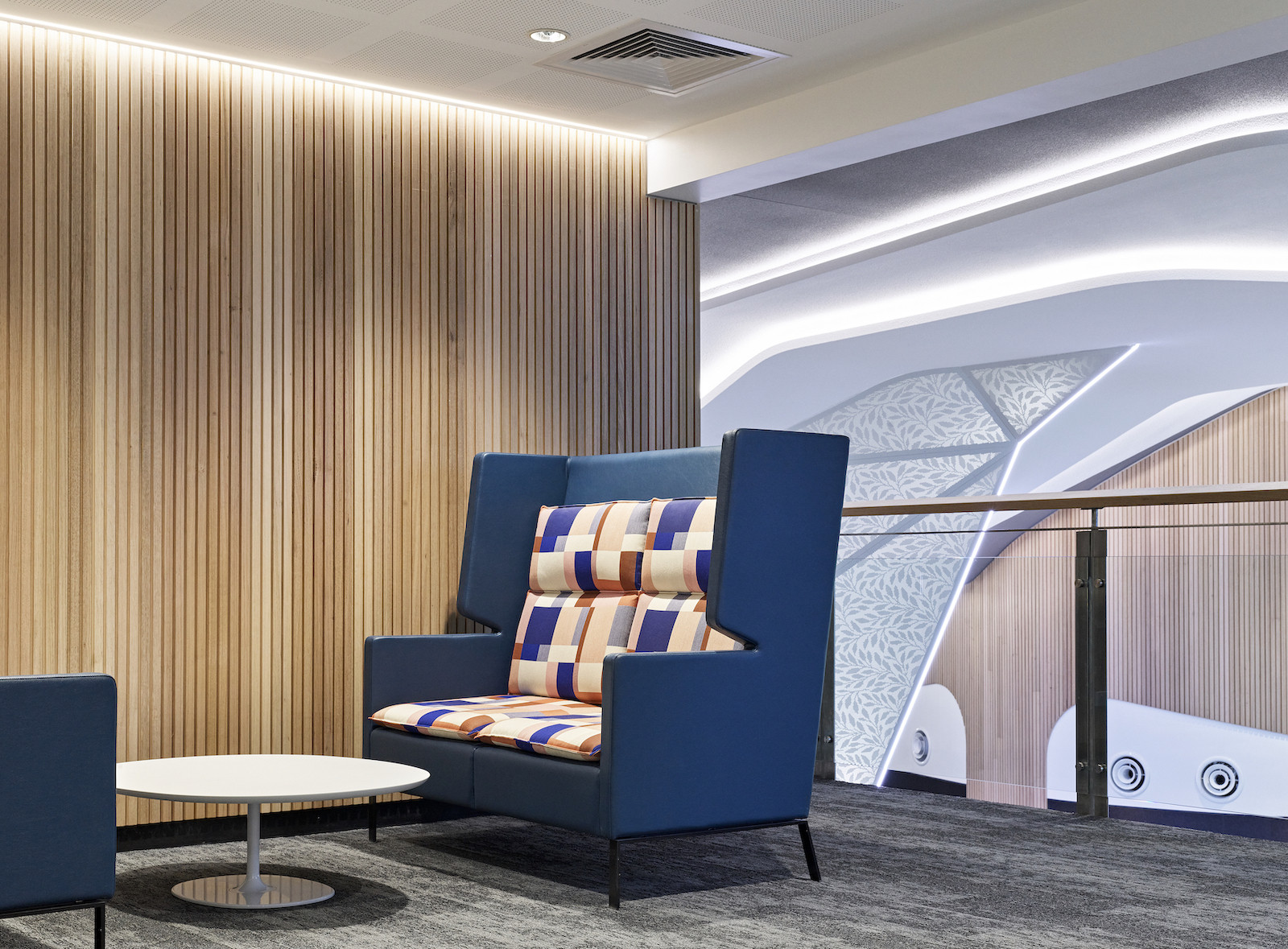 Throughout the College, the designers have specified modular carpeting from Milliken-Ontera. In total, these carpet tiles cover 950m² of floor space.