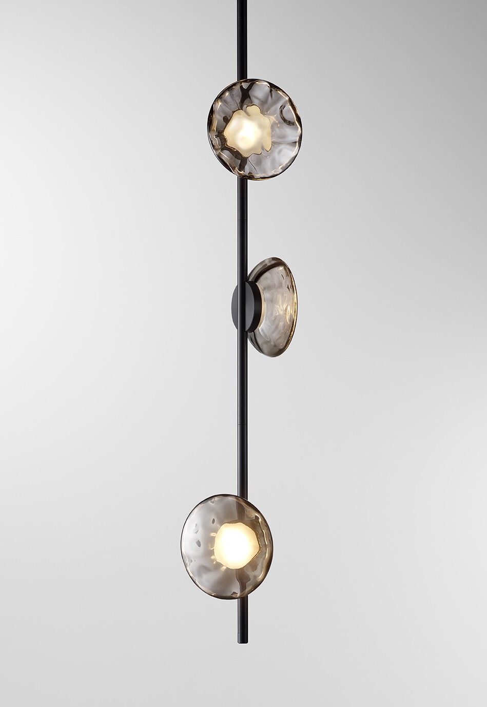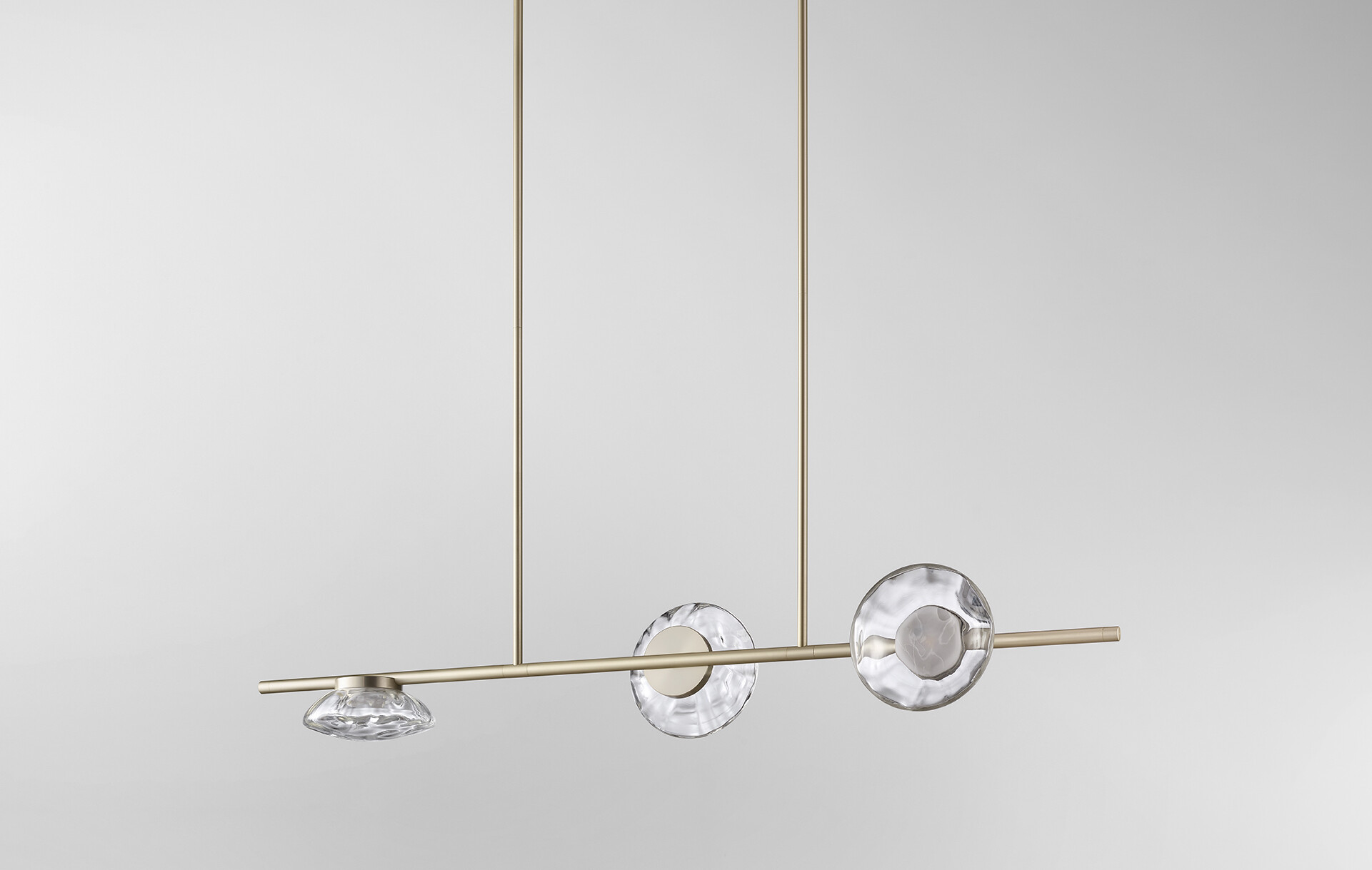 Ceto is a sculptural lighting collection, each piece reflecting a unique pattern, emitting a delicate luminosity. The Ceto Chandelier is available in several horizontal or vertical arrangements, including one, two, three or five-piece glass configurations.