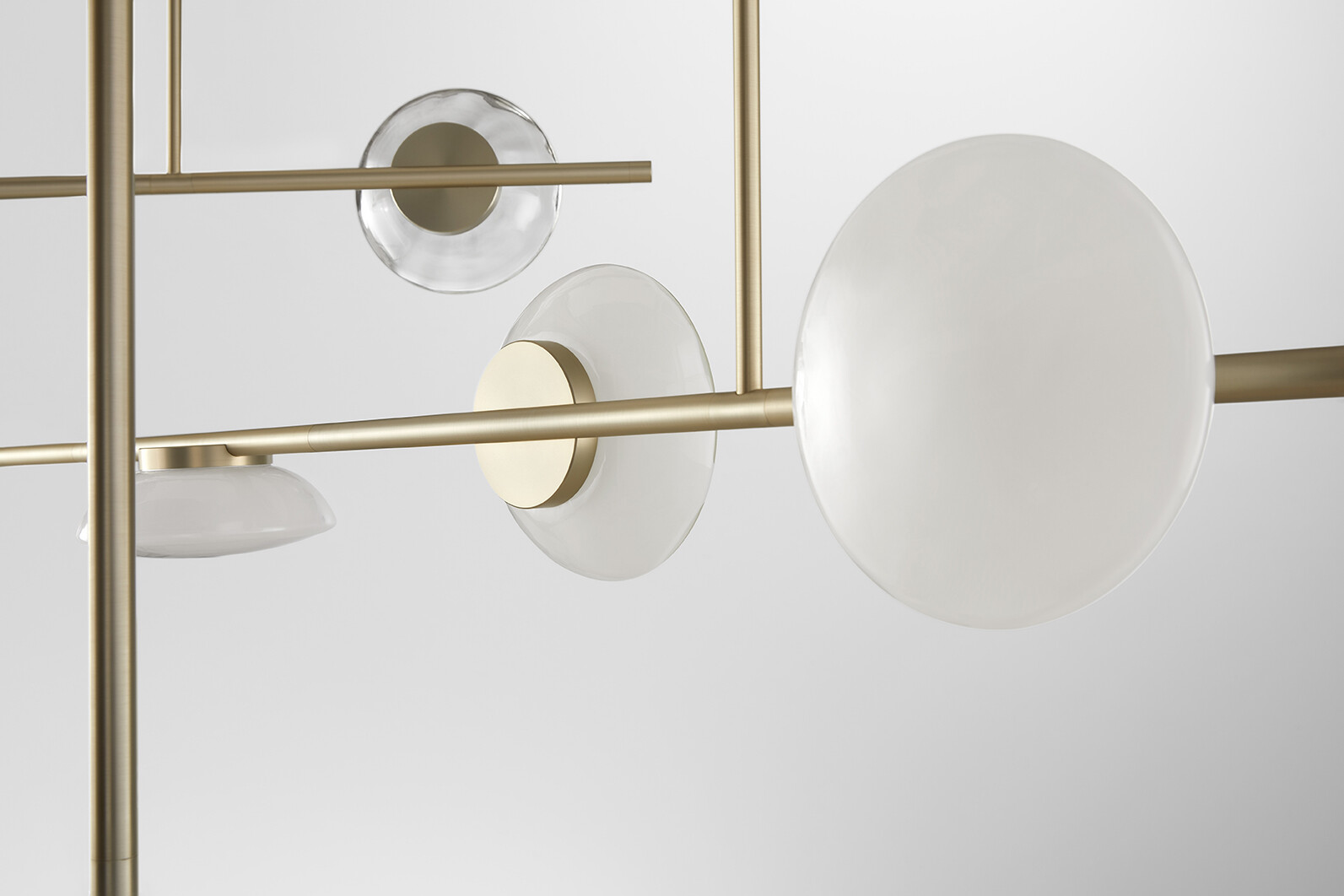 Ceto lighting elements have been seamlessly crafted, each piece individually mouth-blown and available in a selection glass finishes; frosted black, black, clear or white. The Ceto chandelier combines the glass elements with a highly refined machined aluminium body available in a black or champagne anodised finish.
