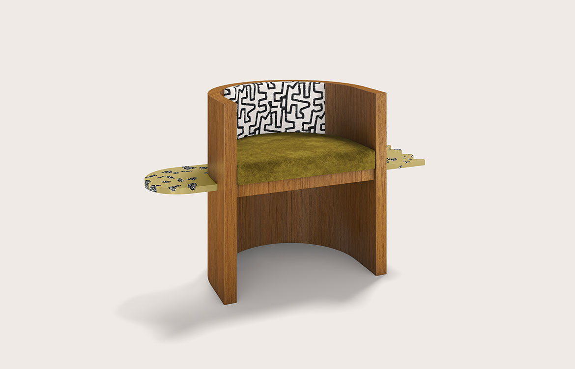 The unexpected Marblo by Markian blade slides seamlessly into the back of the chair, instantly providing a side table on either side of the chair for a drink, a phone or a handbag. The blade can also be used independently as a grazing platter or laptop stand. The finished width of the chair lends nicely to socially distancing norms, making Ferdinand an ideal solution for commercial as well as occasional spaces.