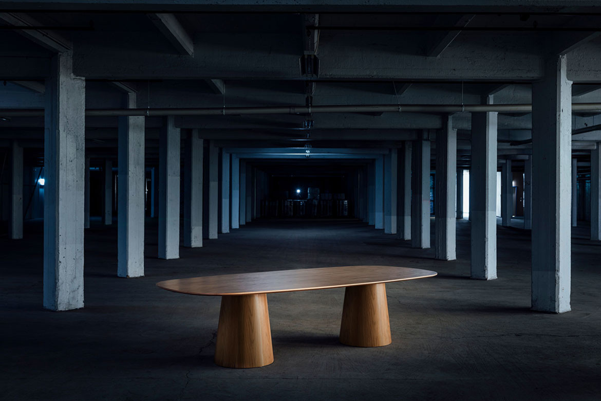 LIQUEUR tables by Didier speak of casual conviviality in timber form. Conical legs at the base create a distinctive silhouette from any angle, fabricated in American Oak with optional stain finishes. LIQUEUR’S confident style can be seamlessly adapted to most any interior context, offering power and data integration as well as a boundless choice between elliptical, round, oval or rectangular tops.