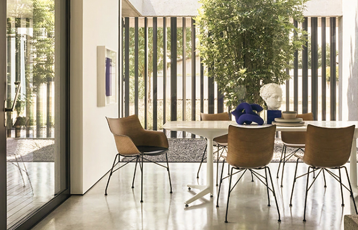 P/Wood is the chair from the Smart Wood collection which, thanks to its simple and rounded lines, fits into any environment. Using patented technology, the wood is worked with a mould designed to bring the curvature of the panel to the very edges, creating a seat with sinuous roundness.