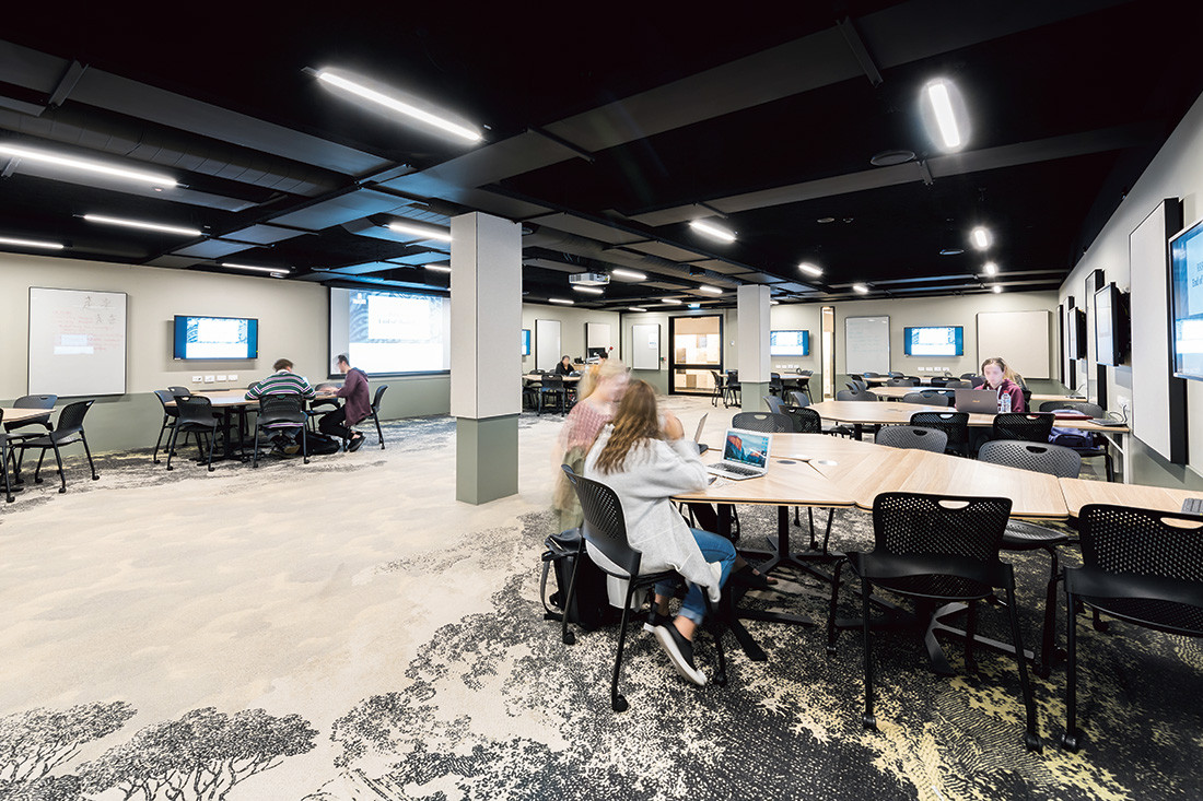 Breakout Spaces: ‘Moooi’ extension chair, new antique container stools & tables, Space Furniture. ‘Nau’ rev stool, Cult. ‘Ellis’ ottoman, Grazia & Co. Teaching Spaces: ‘Krossi’ student table, Schiavello. Throughout: ‘Herman Miller’ caper chair, Easmes DSR chair, Innerspace SA.