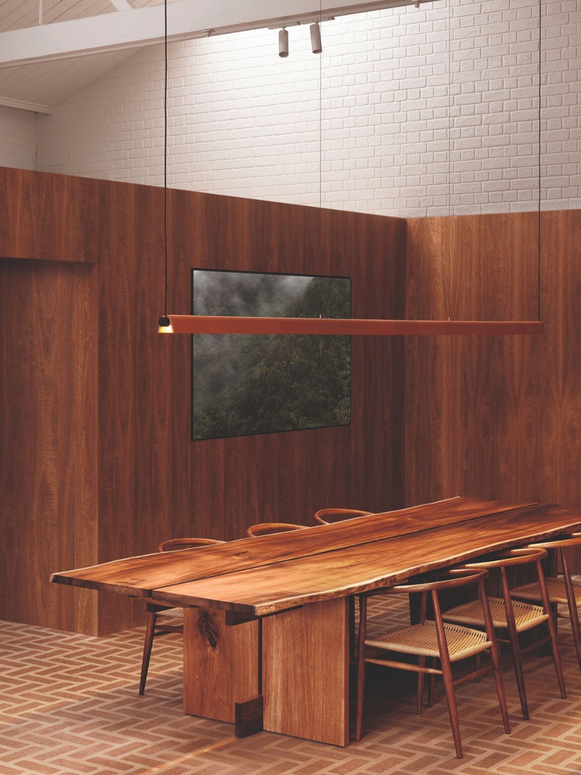 A commitment to low carbon and locally sourced materials is central to the project’s identity. A continuous datum of spotted gum unifies the interior, while the red brick palladiana floor flows through the space to create warmth and coherence. This floor is part of a broader palette of earthen materials that ground the project in tactility and place.