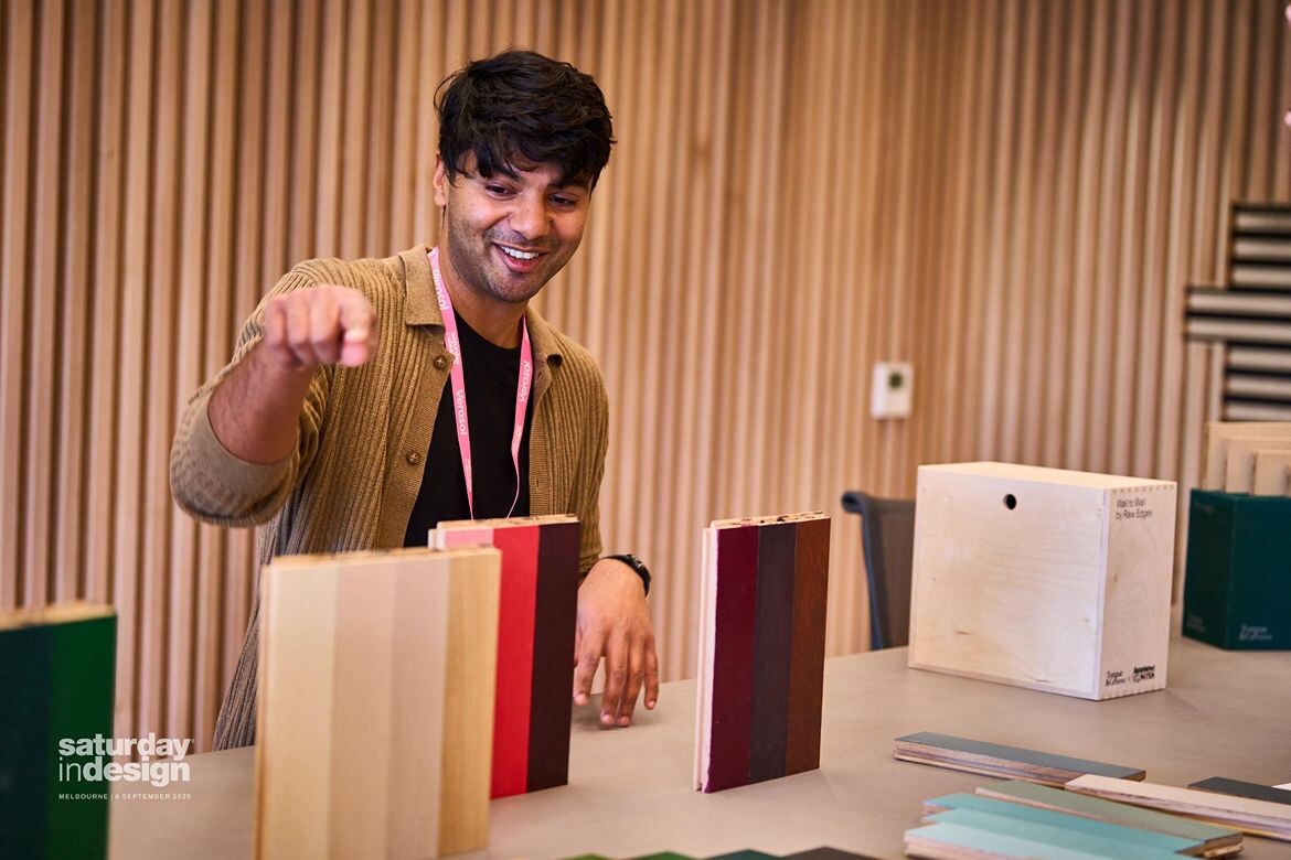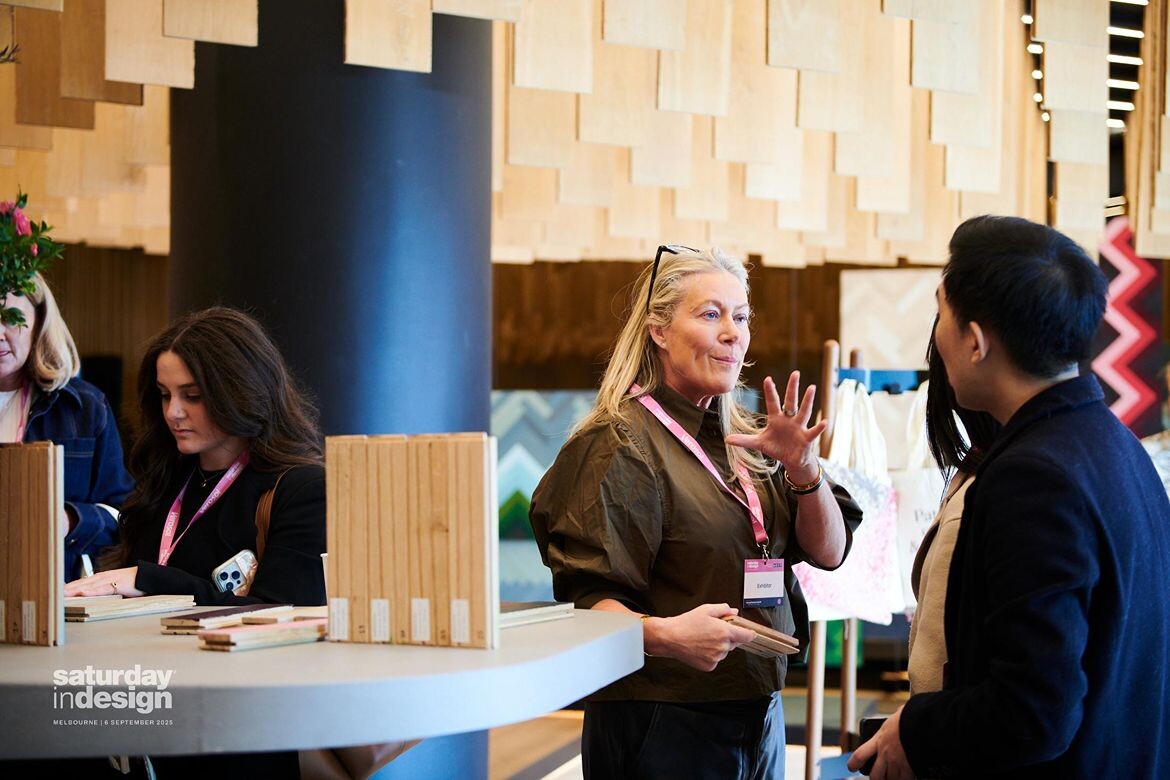 As the morning gathered pace, talk turned to colour, culture and connection. Arthur G’s Storytelling in Colour explored how palette underpins narrative, while Designer Rugs unpacked the power of hue to transform space. In Design Precinct, colour and materiality reigned supreme – DECO’s palettes, Klaro’s Midnight Bloom project and Havwoods’ tactile timber surfaces created a sensory playground, framed by installations from Nathalie Du Pasquier and the Bouroullec brothers. Here, one of the day’s liveliest debates unfolded as designers from both sides of the border tackled the perennial question: Melbourne or Sydney—where is the true design capital of Australia? The conversation spilled into the showroom’s generous hospitality moments, where a melting-pot lunch and later a Spanish-inspired affair kept the crowd buzzing.