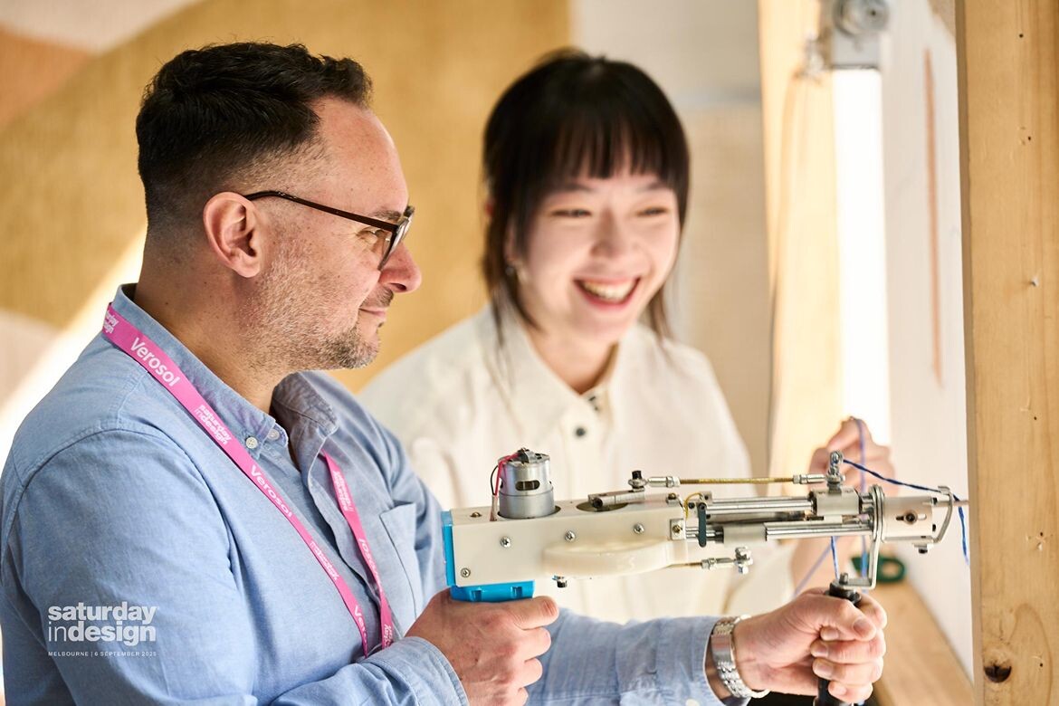 The day opened with the warmth of shared rituals. At King Living, buttery Lune croissants paired with conversation about the future of furniture in Brahman Perera’s forward-looking installation. Baya matched the morning mood with coffee and pastries before shifting into tactile rhythm as a live rug craft unfolded, drawing a crowd that leaned in close to watch materials transformed by hand. Just across the way, Hali Rugs brought indulgence and play into the mix, enticing early visitors with their Wool You Hit It? giveaway and the unexpected pairing of rugs with Tarts Anon pastries – proof that texture can be savoured as well as seen.