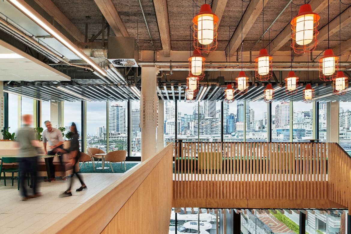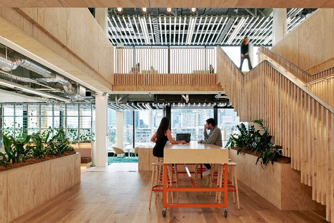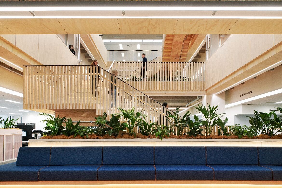 The workplace, Te Paeroa o te Kawau, houses 1,400 Beca employees across three interconnected buildings in Wynyard Quarter. But the numbers that really matter are these: a 43 per cent reduction in upfront carbon emissions for the Beca fit-out, 265 tonnes of CO₂ saved through furniture reuse alone and three staircases – two constructed entirely from timber and one combining a steel frame with timber cladding – that have become teaching tools for the next generation of engineers.