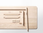 Lightweight and shipped flat-packed, Zetraum’s new table Taut is a slot-together composition of nine parts that allows users to assemble it using a rubber mallet and a turning pin.