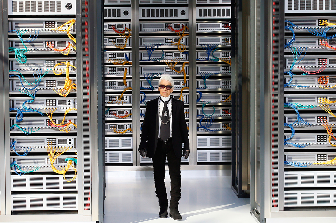 “The data centre is something of our time,” says Lagerfeld. “It’s the idea of the modern person, whatever the time, the century or the circumstances. It’s not technology in a cold way, it’s intimate technology,” he added. “Even if you don’t like the idea, technology rules the world because it changed the world and it’s made many things easier; work, live and play.”