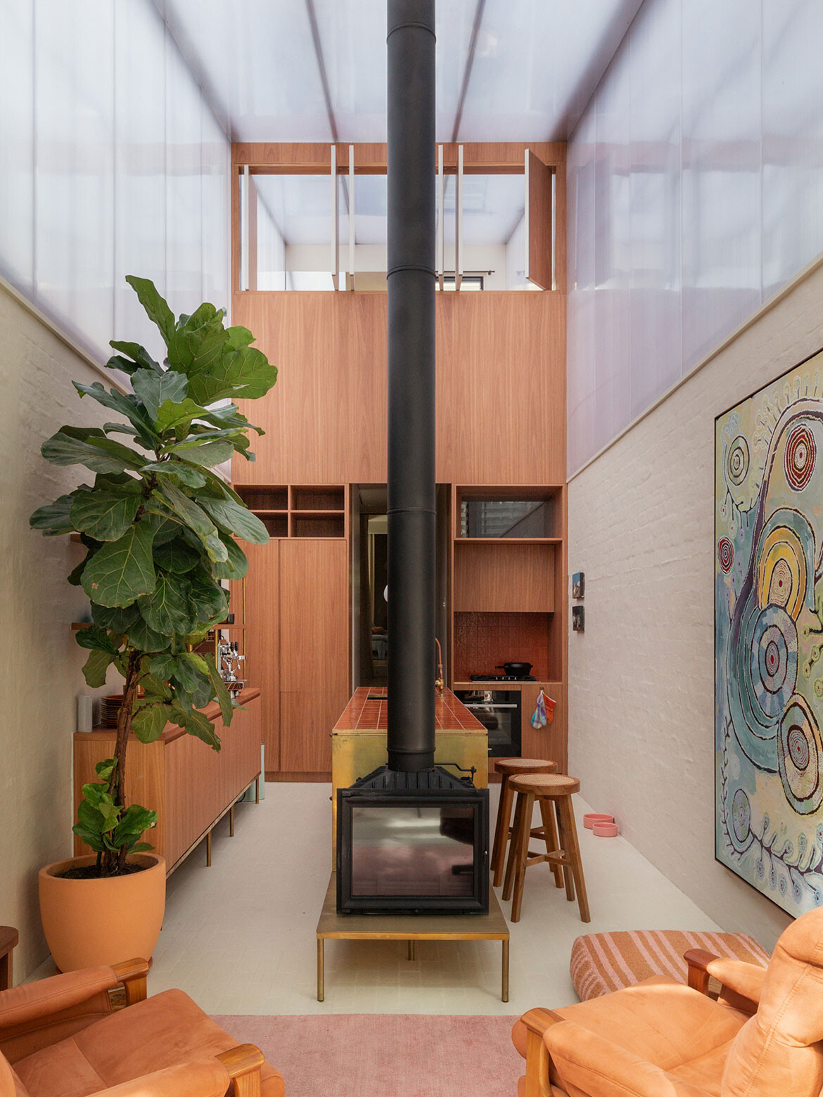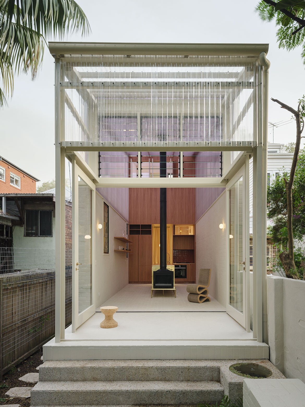 House in Erskineville is a three-and-a-half-metre-wide Victorian terrace that reimagines family living through minimal intervention and maximum adaptability. Only six square metres were added; instead, internal walls were removed and a translucent polycarbonate volume introduced at the rear. Spanning twelve metres with the support of existing brickwork, the insertion bathes the kitchen and living areas in diffused light, creating a surprisingly generous, flexible space within a compact inner-city footprint. The young practice was also nominated in 2024 with Apartment in Double Bay II.