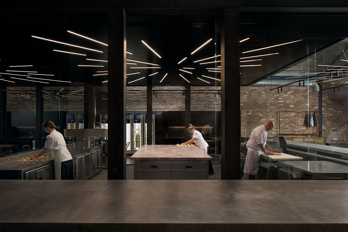 Bespoke details, such as the brass timeline and curved portals inspired by celestial movements, create layers of discovery within the space. Murphy’s images capture both the narrative and the atmosphere of Lune Rosebery, translating the spatial drama and tactile richness into compositions that communicate the bakery’s story beyond its culinary offering.