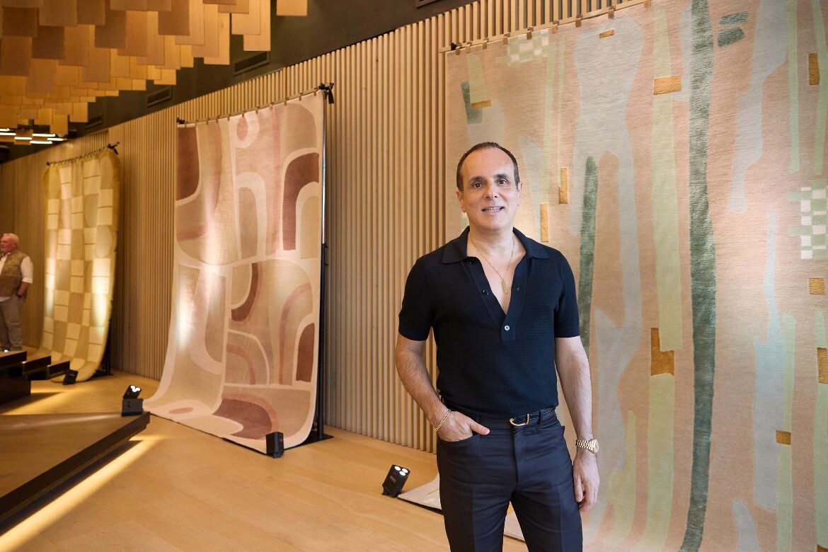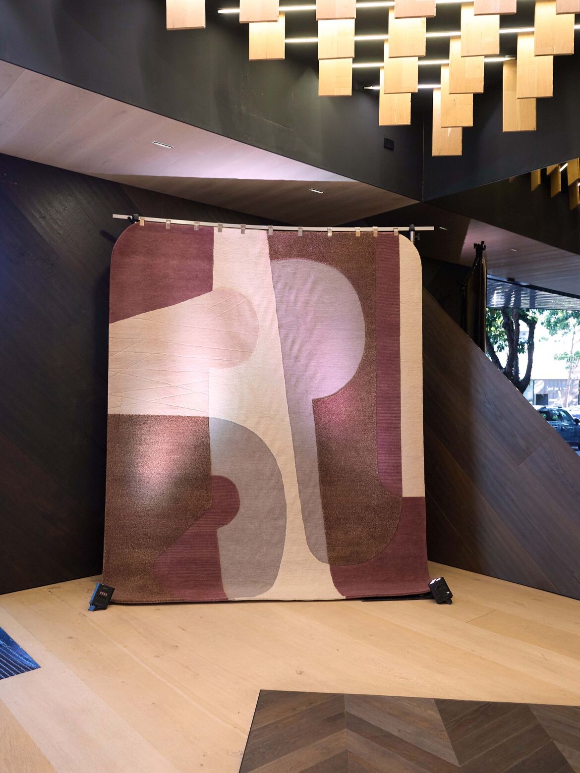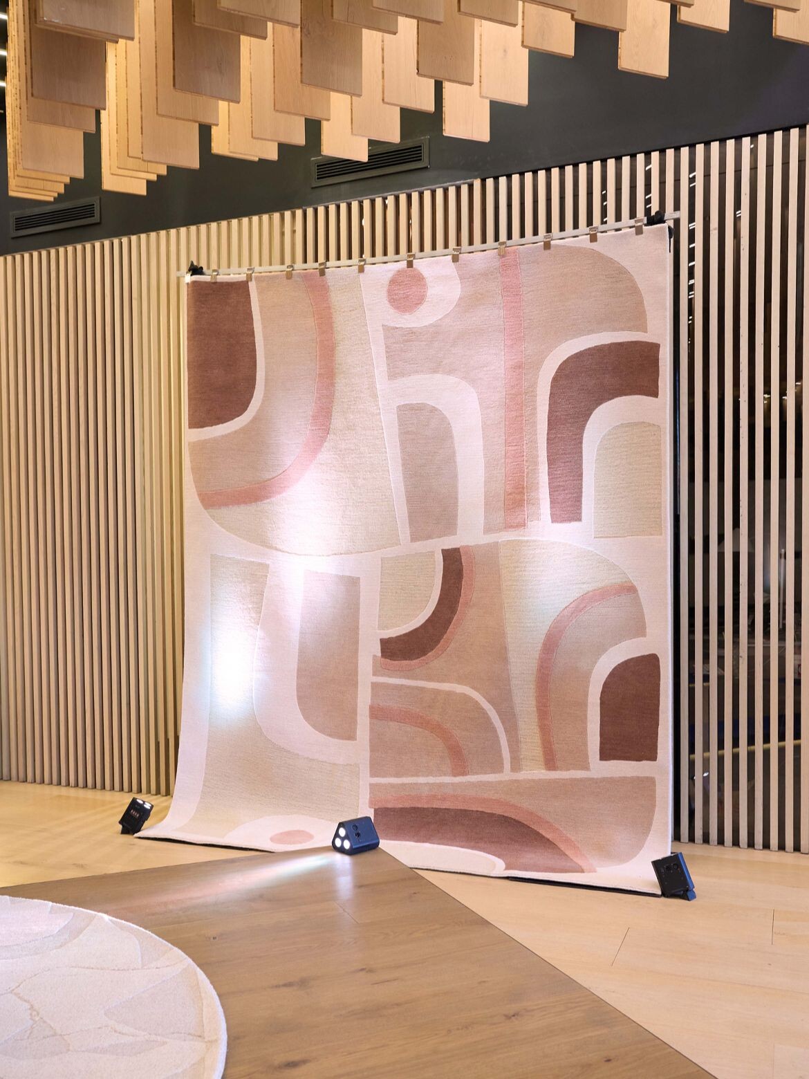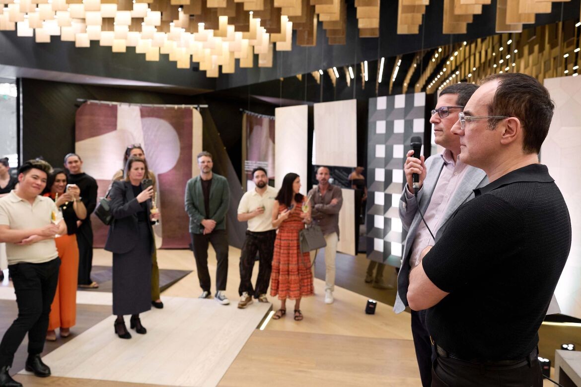 A key moment of the night was the introduction of Cruda, a handknotted Tibetan wool collection inspired by the expressive forms of Brutalism and the clarity of modernist architecture. Each of the six designs explores strong geometry and tonal richness, giving the rugs a sculptural presence that guests were able to appreciate up close.