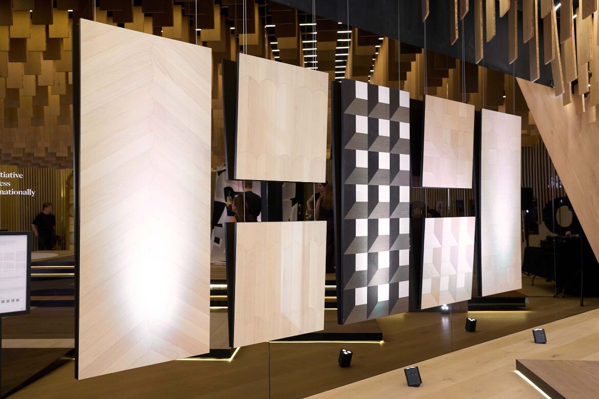 Displayed alongside Cruda was Bosco, the timber flooring collection Natale created with Tongue & Groove. Taking its name from the Italian word for “forest,” Bosco explores the texture and grain of timber through pattern and finish, offering designers a palette that feels both natural and highly refined. Seen together, Bosco and Cruda formed a compelling dialogue: the warmth and tactility of the rugs softening the architectural lines of the flooring, while the clean timber surfaces intensified the rugs’ textural depth.