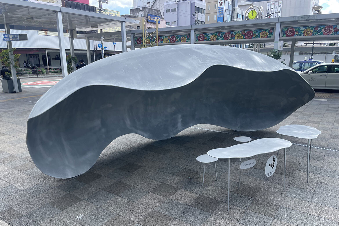 Outside the JR Fukuyama Station’s south exit, I found Junya Ishigami’s ‘Cloud Descend.’ Its curvy form opening up on one side was an anomaly among the city’s composition of glass, concrete and boxy architecture. Built in collaboration with Tsuneishi Shipbuilding & Tsuneishi Kamtecs, it functions as a visitor information centre.