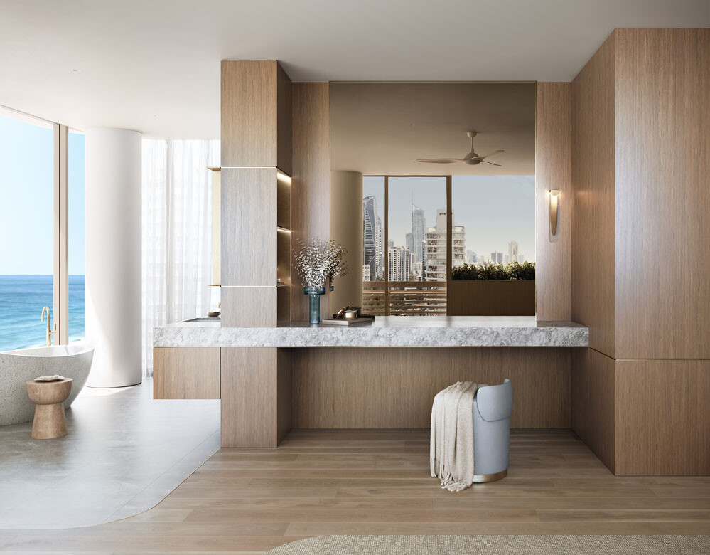 “Queensland is at a pivotal time because we’ve got the 2032 Olympics coming up and we’re competing for tourism and global attention,” Ockwell explains. “That means our interiors need to compete on an international stage. We’ve been looking at groundbreaking multiresidential developments globally and asking how we can elevate our offering here.”