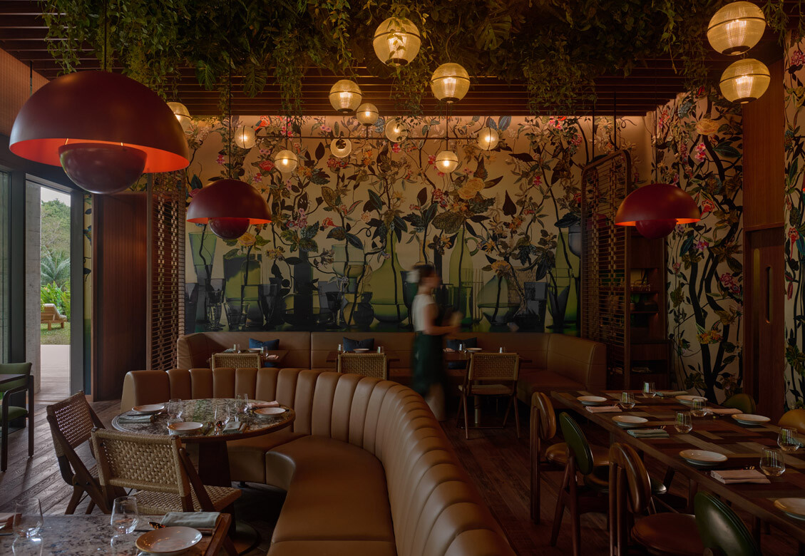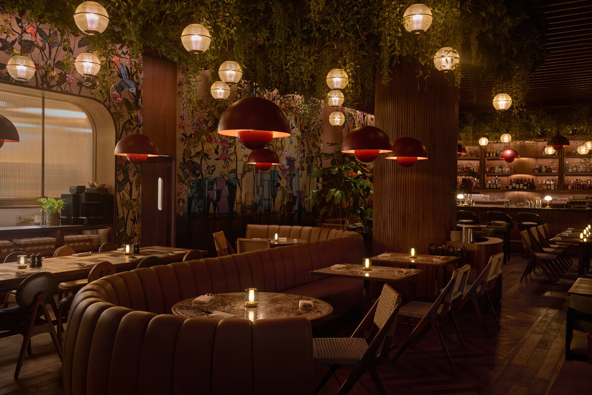 Also on this level is Kaya at the Standard, a Japanese-inspired izakaya. This is the main all-day dining restaurant and is defined by greenery. There are outside gardens to be seen at every vista and inside, cascading plantings complement a striking floral wall mural, custom-designed with textural additions that make this a remarkable work of art.