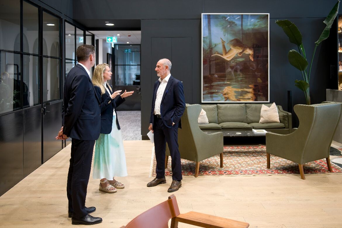 A thoughtful, low-waste redesign by PMG Group in collaboration with Goodman has transformed a dated office into a calm, contemporary workspace featuring a coastal-inspired palette and Milliken flooring for a refined finish.
