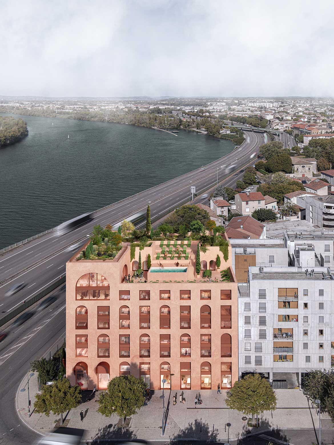 And this sculpted volume offers multiple qualities. It allows us to create successive levels, each offering a direct view of the square. They are like balconies, installed one above the other, tumbling down towards the square. The square becomes the stage for the theatre we create: the square and the building form an indissociable whole, one enhancing the other and vice versa.