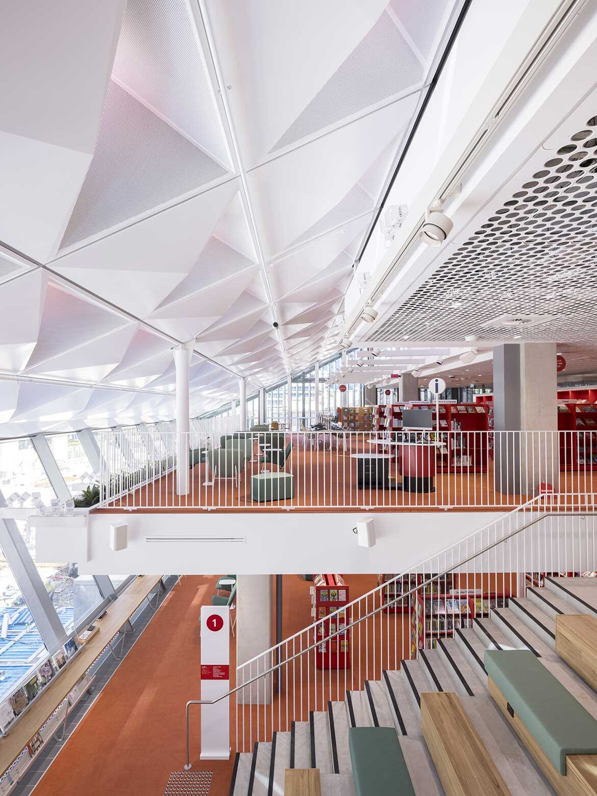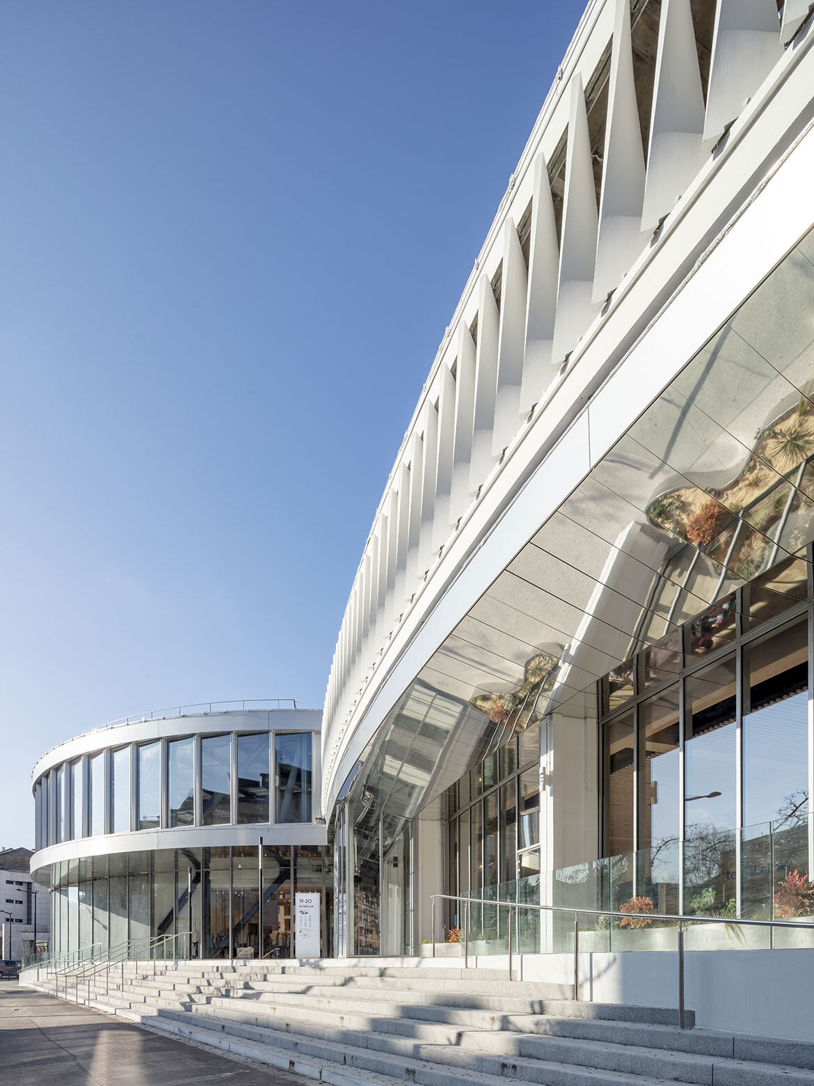 Yes, colour is important, of course: it’s part of a strategic process aimed at enhancing this public facility. The neighbourhood is full of glass buildings with grey curtain walls and ultimately quite corporate. We wanted to break away from this monotony by creating an unexpected “object”, at once very respectful of this urban context, but at the same time highly unique, powerful and artistic.