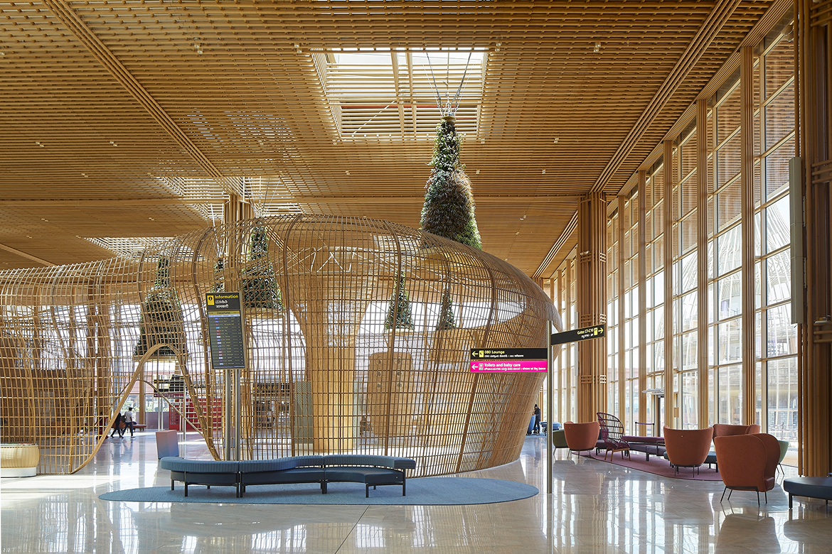 Advanced parametric modelling allowed the team to control gradients of openness and enclosure, creating spaces that are simultaneously transparent and functional. The result is an environment that feels more like a landscape than an airport – uplifting, immersive and deeply tactile.