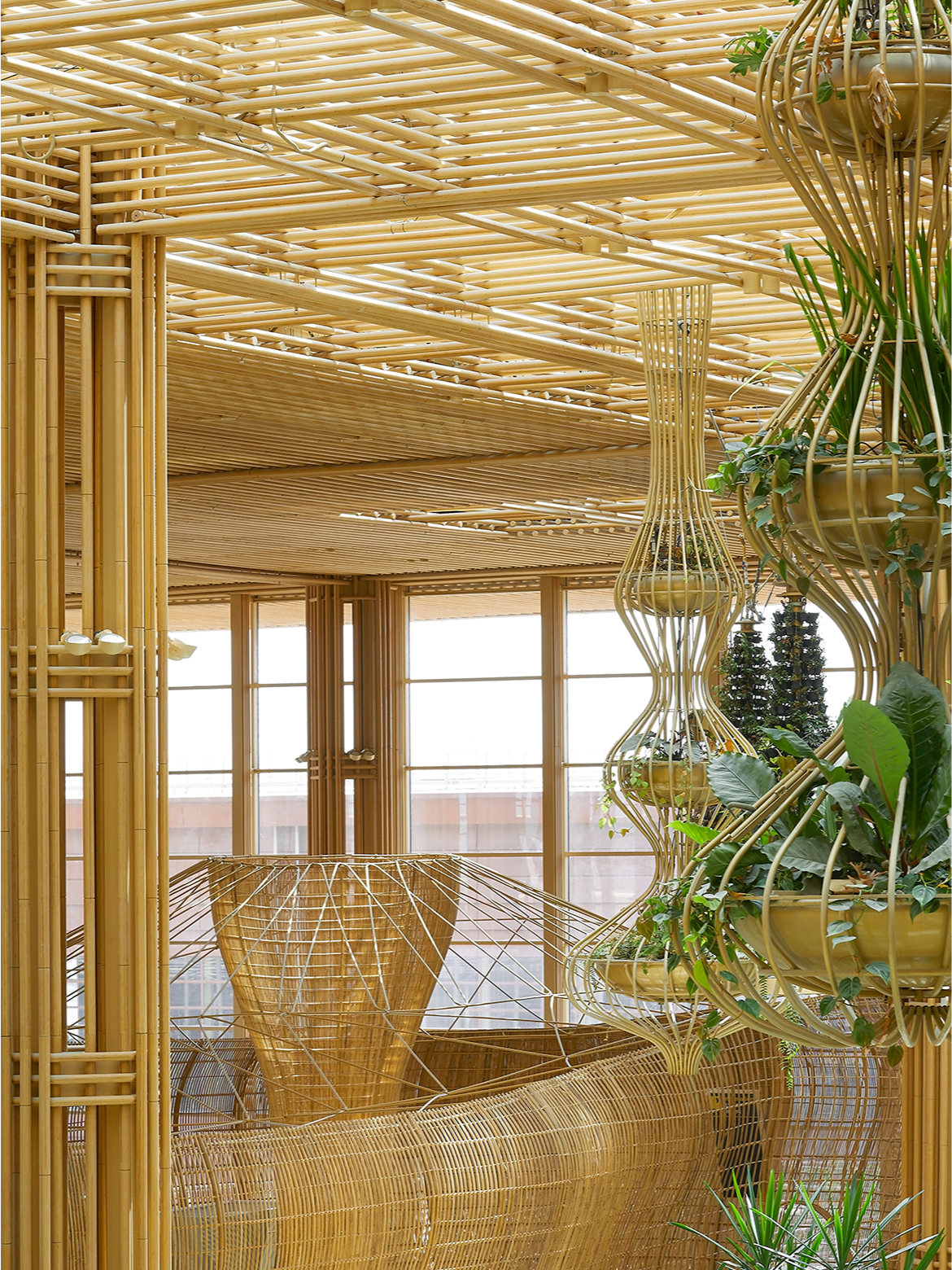 Using nine kilometres of rattan, the project substitutes materials such as steel, paint and plastic with a fast-growing, renewable alternative. The interiors were designed as modular, lightweight panels – fabricated off-site, numbered, transported and assembled with precision, much like an aircraft monocoque structure.