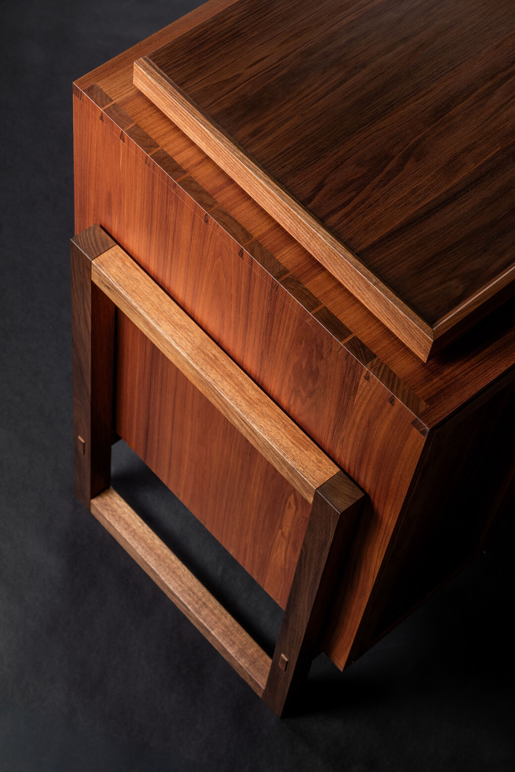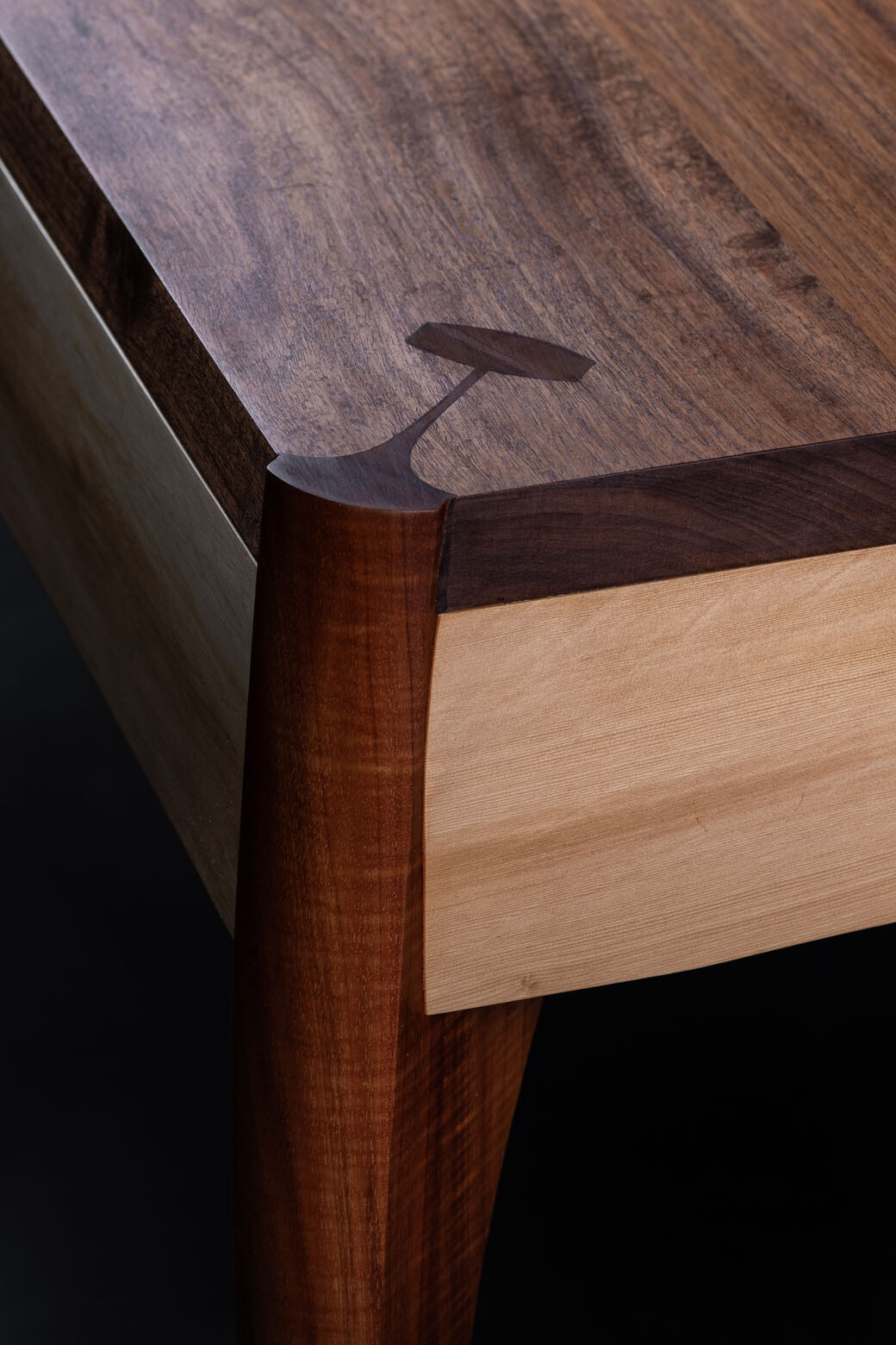 Once the material is selected Dux creates a design that includes one or two focal points and then ensures that every detail is refined for a perfect result. For example, the Sham Bedsides feature double bridle leg joinery, hand carved cove profiles with dovetailed piston fit drawers and shiplap back panels.