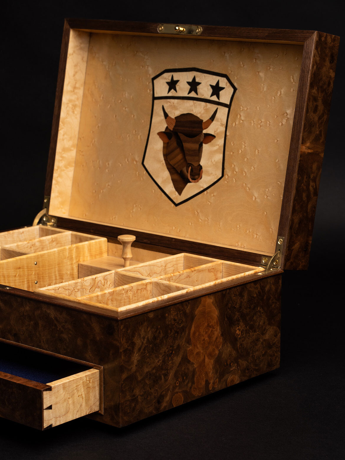 Australia has a deep pool of highly skilled designer-makers and Dux sits comfortably among those shaping contemporary furniture practice. Works such as the Flame Table, Art Deco Wall Unit and Josh’s Watch Box offer a clear view of his approach.