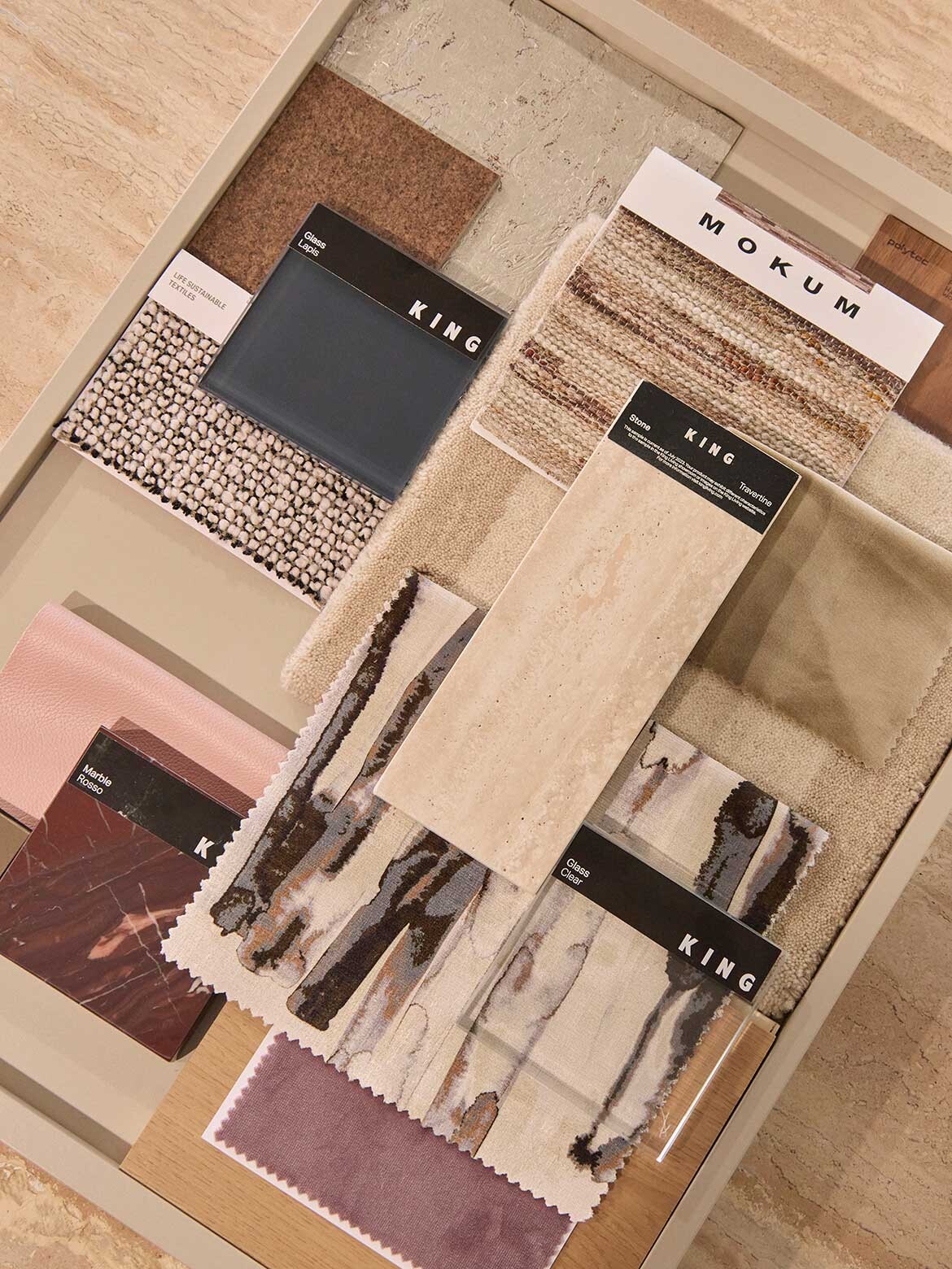 The King Trade Hub functions as a showroom and a collaborative workspace for architects and interior designers. Here, a specialist team of King Trade Consultants, many with design industry backgrounds, is on hand to collaborate with professionals through every stage of the specification process. From fabric selection to space planning, designers can receive tailored advice within a private consultation environment.