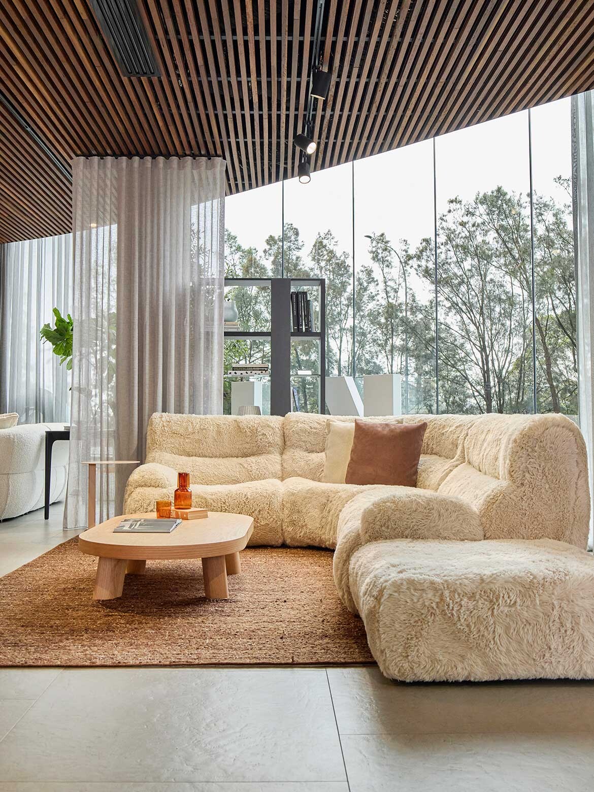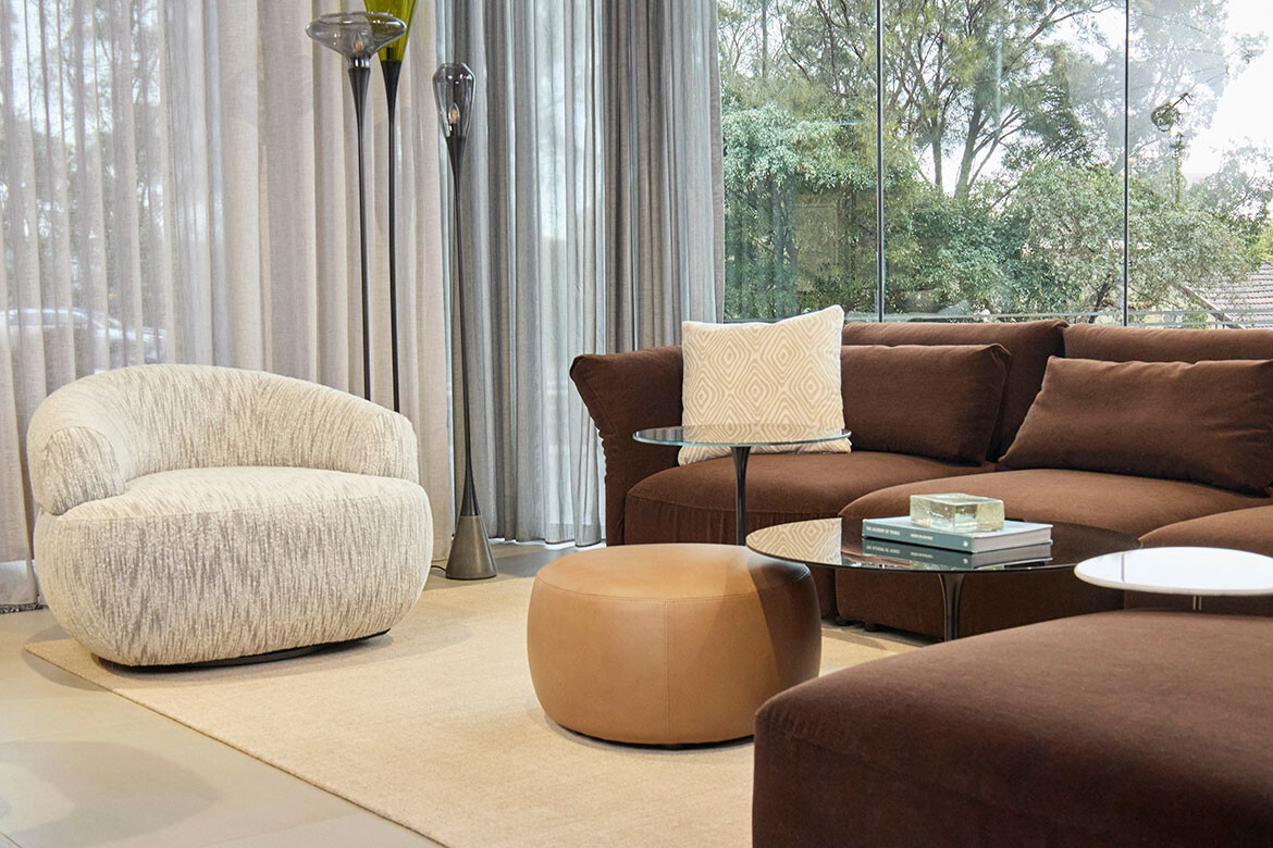 The Hub’s resource centre is comprehensive, replete with a library of more than 200 exclusive fabrics and leathers, alongside premium finishes such as Italian marble and signature timber stains. A curated edit of textiles from renowned houses – including James Dunlop, Mokum, Elliott Clarke, Kvadrat and Maharam – is also showcased on King Living pieces within a dedicated display zone, creating an immersive experience that allows materials and forms to be appreciated in context.