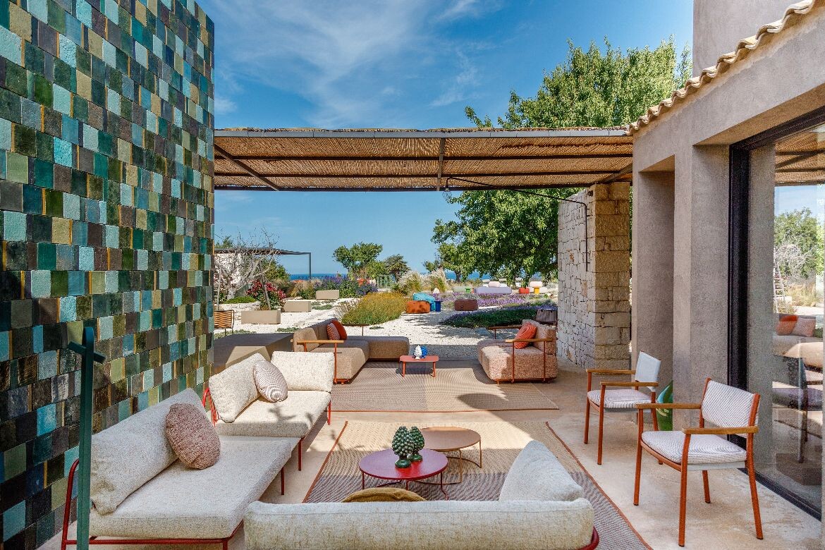 At Villa Riviera resort, located between the visitor hot spots of Portofino and Cinque Terre, the sea view is one of the main events, and the perfectly positioned terrace invites guests to contemplate the vista. Tribeca armchairs and lounges by Mandelli Pagliarulo in distinctive terracotta hues that echo Etruscan pottery suggest moments of ease and serenity with a woven, extruded PVC material that imbues lightness and a touch of glamour. Paired with the sophisticated and minimalist steel Nolita tables designed by Mandelli Pagliarulo, settings are created that complement the nature of place.