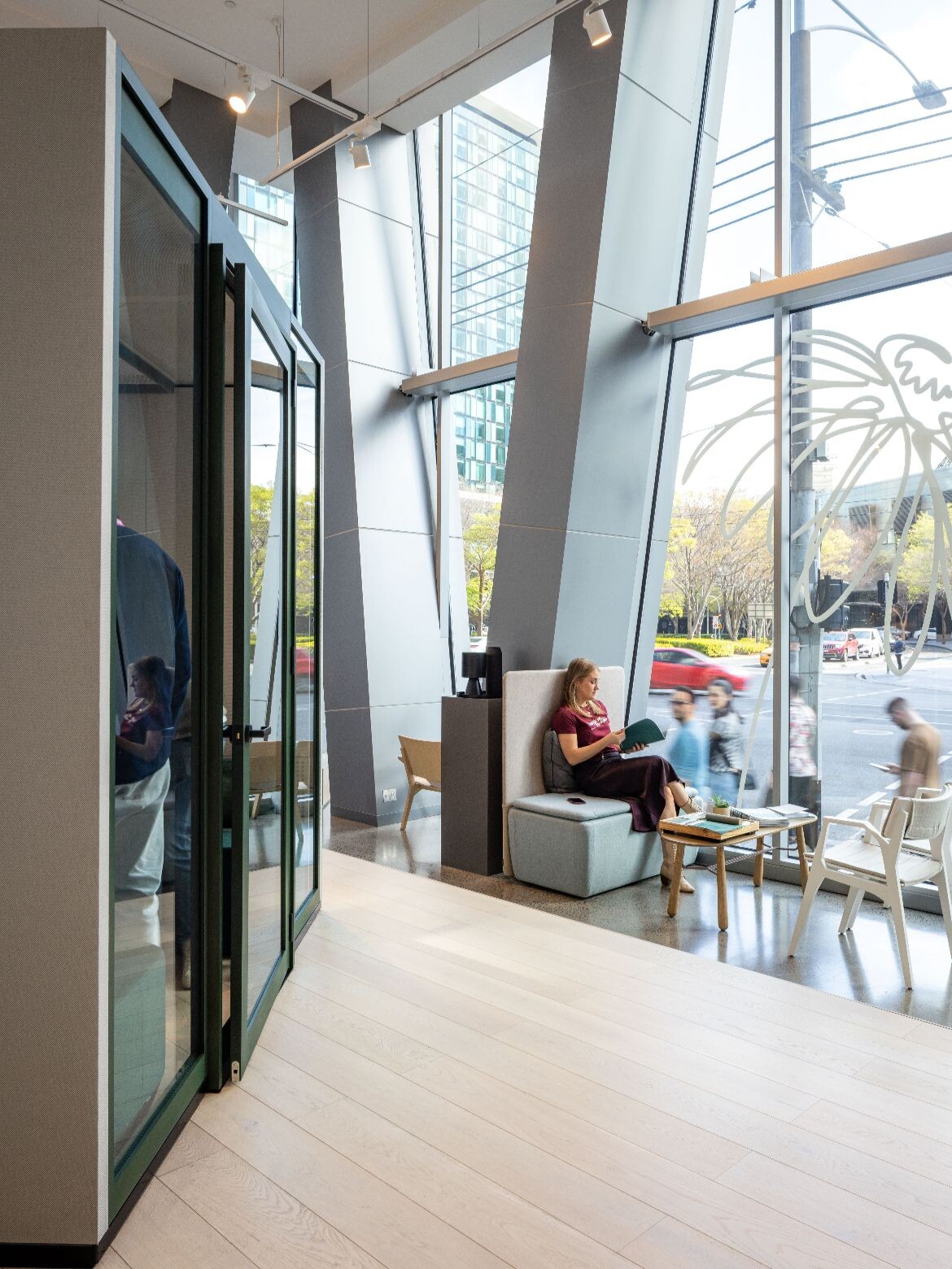 At the heart of the refreshed showroom is the next generation of Schiavello’s Focus Quiet Room collection of pods designed for uninterrupted private work. The collection now has six room types, including the new Phone Room Plus, which won Best of NeoCon Gold in 2025, and the Gather Room Plus, which is purpose-built for accessibility, providing space for a wheelchair 180-degree turning circle. Improvements across the entire range include a number of design and technology features, enhancing both the user experience, including access, control and comfort, alongside installation efficiencies. The FQR NX WiFi-enabled booking tablet, integrated with the Nura Space workplace management platform, gives users the ability to book and check-in to meetings via the panel directly, as well as view upcoming room bookings.