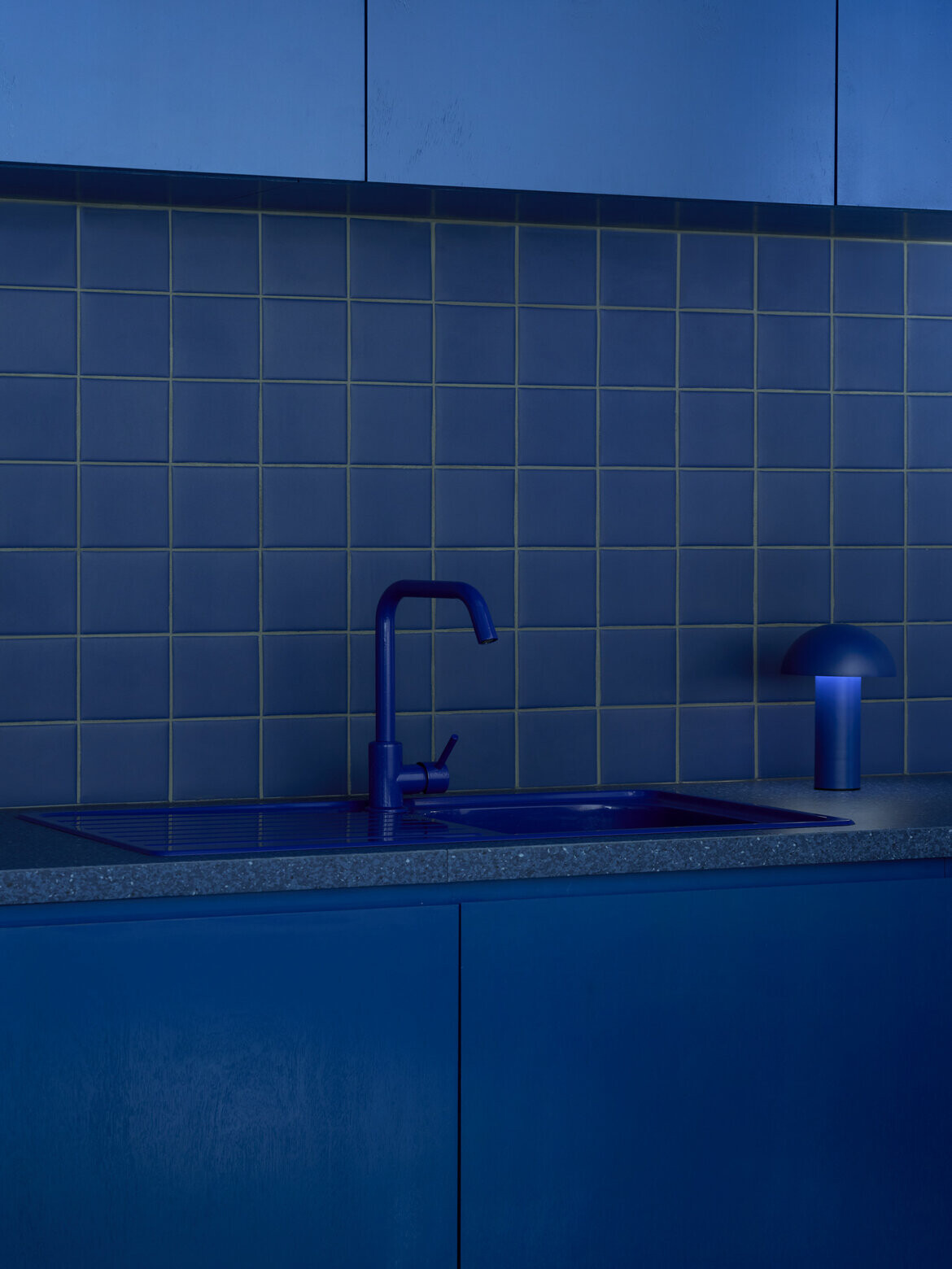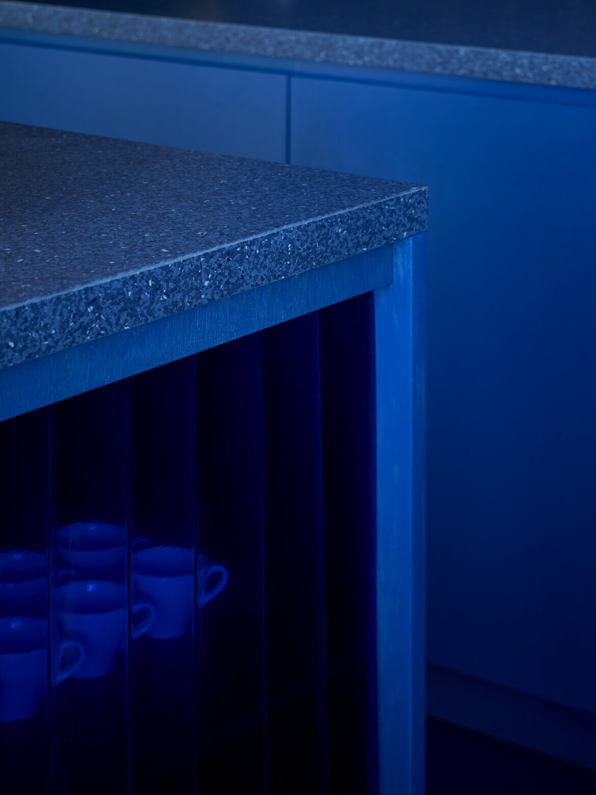 As Kossen comments, “I struggled to find a bench top with the saturation of blue that I wanted and the Polyflor colours are so vibrant, I thought why not, let’s use a hard-wearing commercial flooring for the bench top. It has been a great outcome and best of all, I didn’t need to compromise on my strong vision of this incredibly bold, blue monochromatic moment.”
