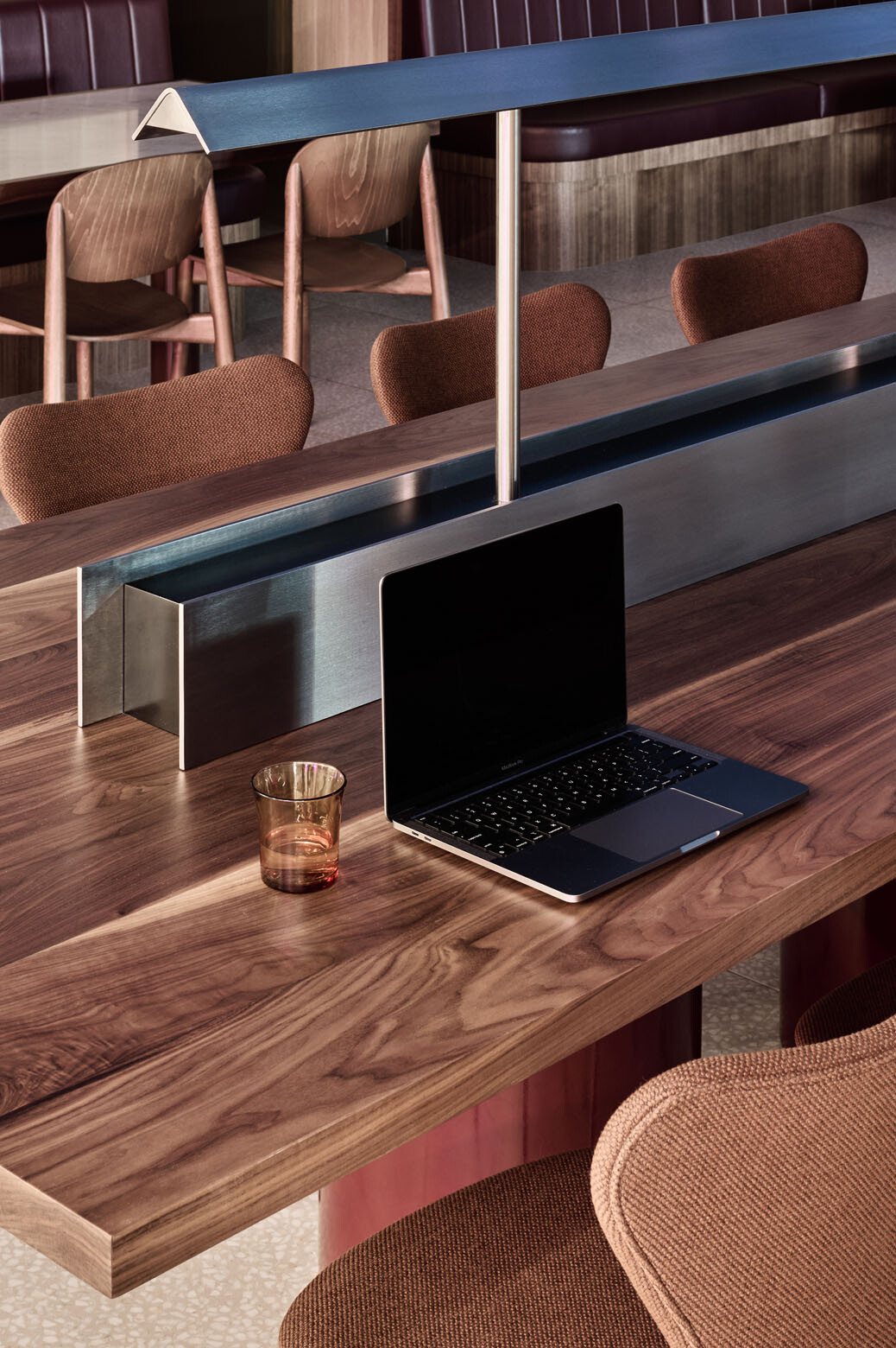 This was particularly integral for the south-facing and deep design of 440 Collins’ lobby space. Other important design elements include the bespoke fixed furniture such as banquettes, high tables, window benches and the external tables by Studio Tate.