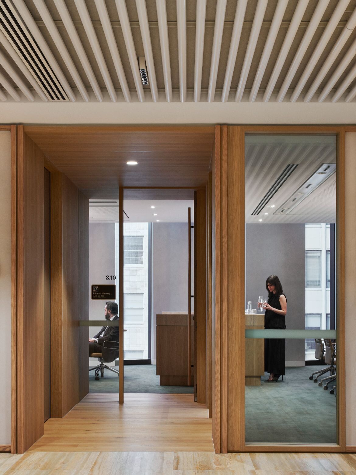 This emphasis on social encounters and in-person interactions is central to the design of the new eight-storey office – Ashurst’s second-largest workplace globally. The brief asked Architectus to “move away from the traditional legal office structure of enclosed offices for senior staff and open-plan areas for junior staff,” explains Bondin. “The vision was to create a more flexible, experience-based environment that would enhance both client engagement and staff collaboration.”