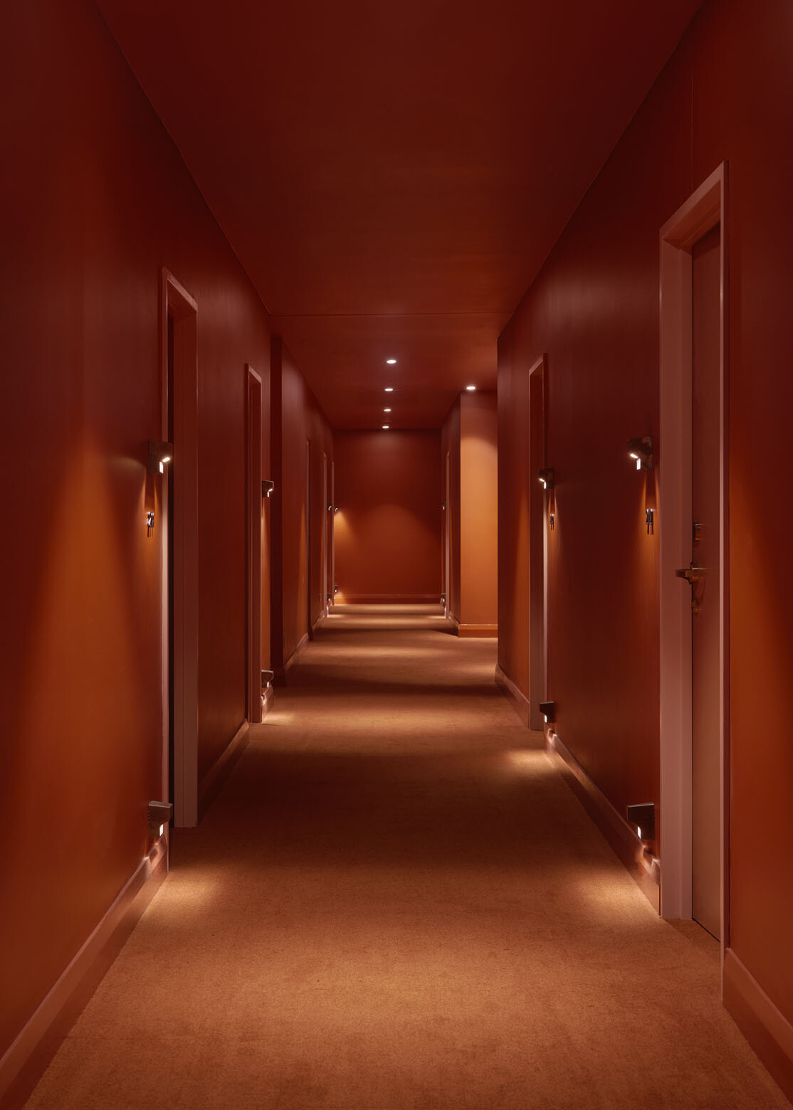The same place-driven logic extends into the hotel’s event spaces and guest areas. In the reception lobby and rooms, where Foolscap curated furniture and lighting, the interiors shift towards an artful minimalism that supports the architecture rather than competing with it. Sustainability informed decisions throughout, with an emphasis on circular design and locally sourced materials, including salvaged travertine.
