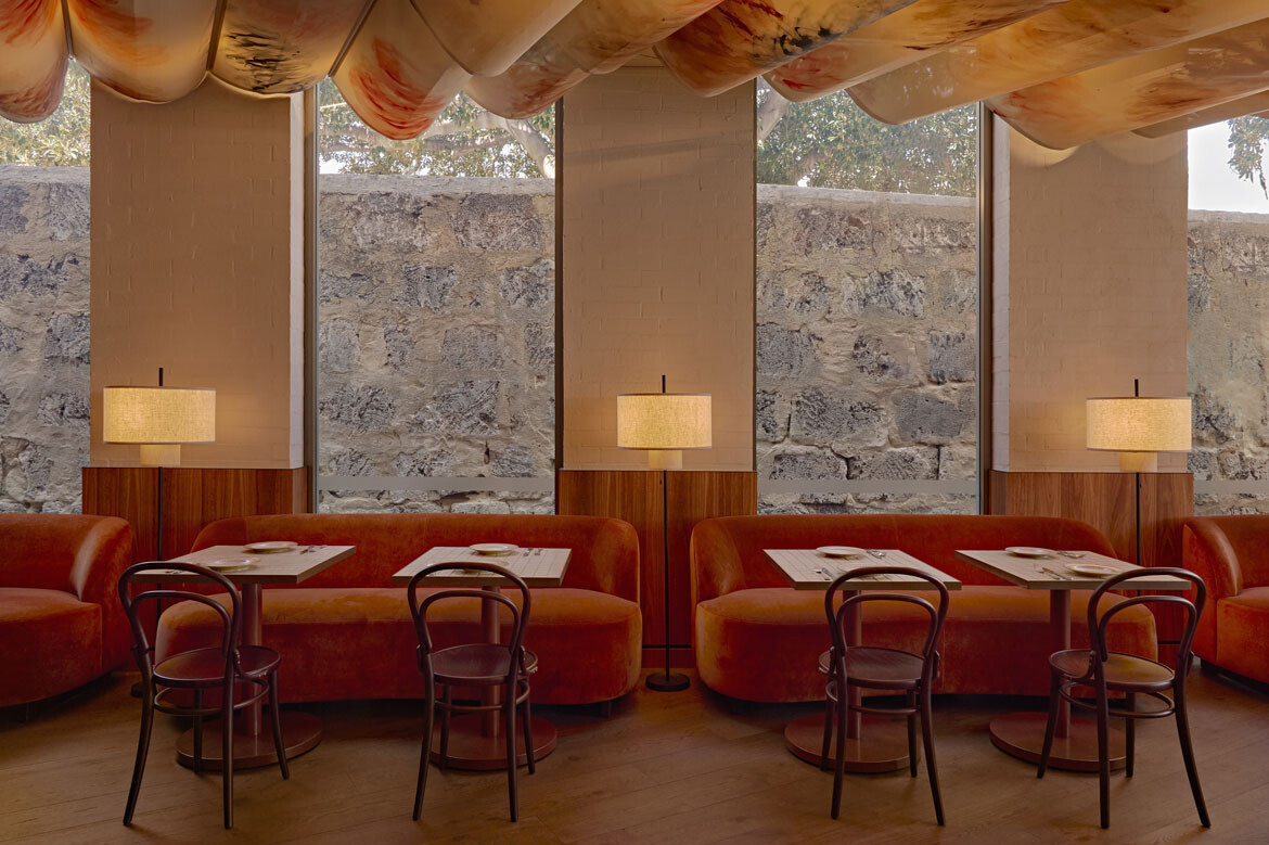 Interior design for Anglesea, the hotel’s bar and restaurant, along with its event and meeting spaces, was led by Foolscap. From the outset, the studio positioned locality as more than a visual reference. Instead, the interiors draw meaning from Fremantle’s port history and its long-standing culture of craft, industry and making.
