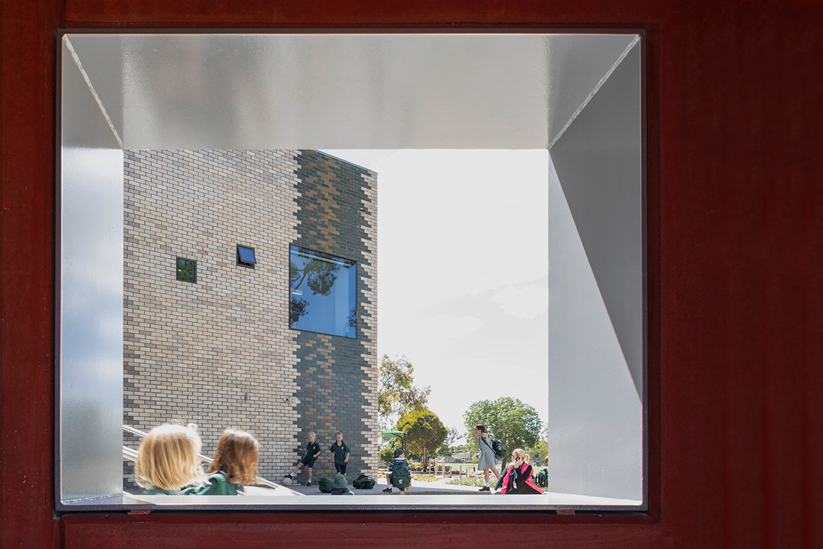 Vertical connections within the verandah are reinforced through voids and two staircases, one embedded within the plan and another expressed as a clocktower. Here a balcony landing allows games and stories to be shared. The central landscaped courtyard is shared between year levels, creating a soft and rich inner world characterised by the stand of existing trees and fall in grade.