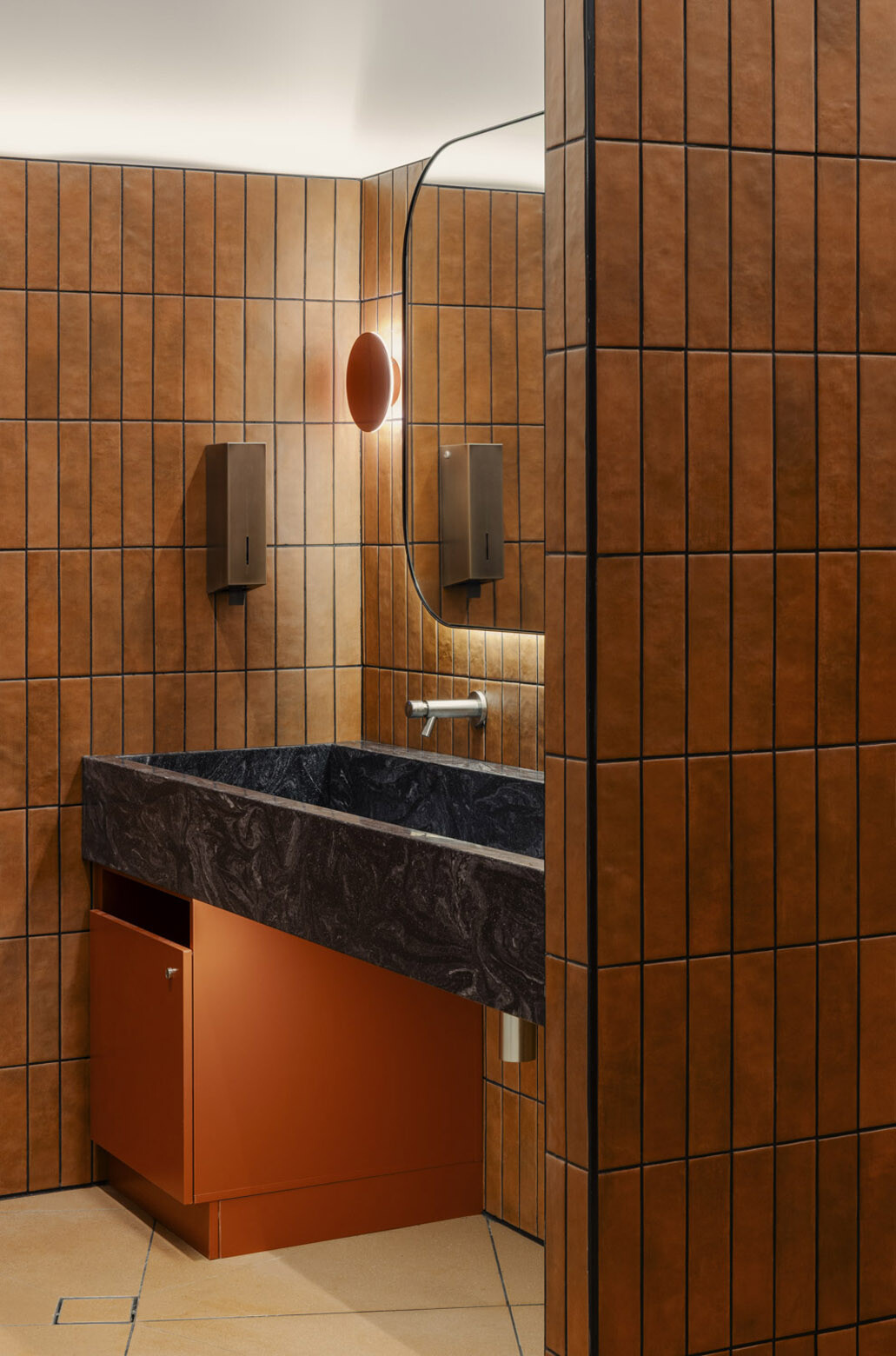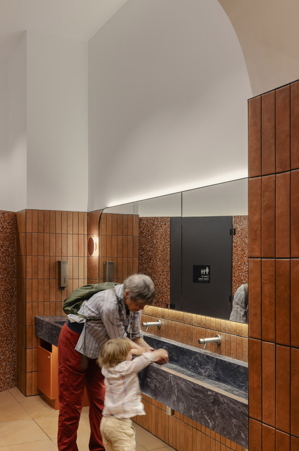 The project’s most meaningful impact lies in its approach to inclusivity. Accessibility was treated not as compliance but as a design value. Contemporary accessible amenities, multiple baby-change facilities and a dedicated child/carer cubicle support a broad demographic. “Designing for dignity meant creating an environment that feels calm, intuitive and welcoming for all users,” says Navius. “By prioritising spatial clarity, sensory ease and equitable access, the design supports a wide range of users and fosters a sense of respect and safety within the compact public environment.”