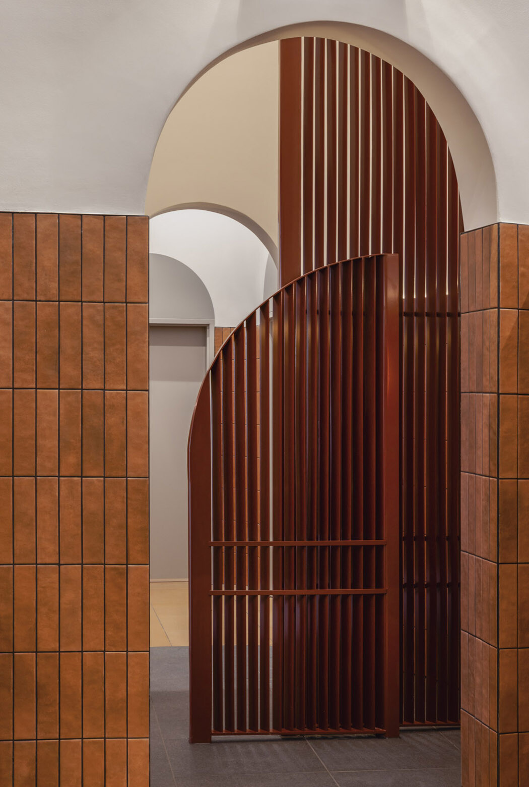 The interior language draws from the industrial heritage of nearby Pyrmont Bridge, but without slipping into nostalgia. Rather than replicating historic motifs, HDR abstracted qualities of terracotta warmth, robust materiality and structural clarity into a contemporary palette. Matte finishes, tactile surfaces and softened geometries create a calm spatial experience that feels rooted in place yet unmistakably current.
