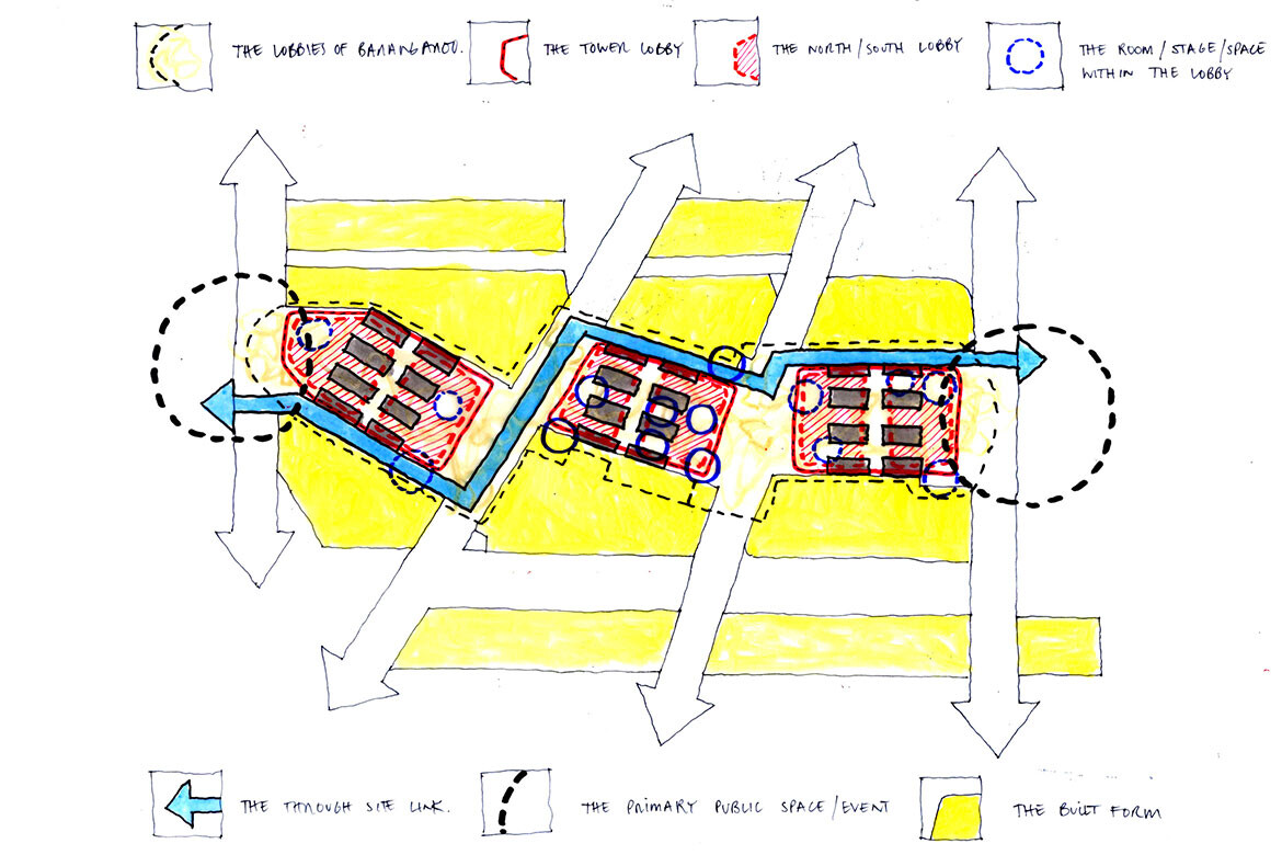 Harbour almost exclusively describes the project in city-scale terms, always conceptualising the three International Towers’ places in relation to the wider Barangaroo Masterplan and indeed the city as a whole. “I think we were certainly interested in it because it was a project about cities and RSHP has been very interested for many years in what architects can bring to more conventional city planning,” he says.
