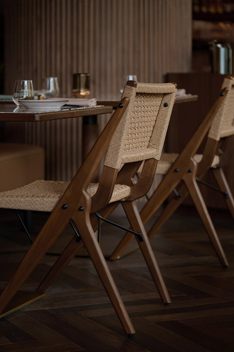 “The vision for the space in Kaya was all about warmth, connection, and a kind of quiet sophistication,” Mohammad enthuses, explaining that the team set out to create a worn-in finish that felt inviting and storied. “Like it had already lived a few good years,” he smiles.