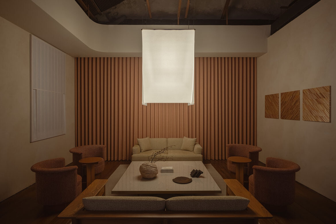 Translating the Loca Niru concept in spatial terms, for Ashizawa, meant “softening light, reducing visual and acoustic noise and allowing the atmosphere to feel composed.” At the same time, the team was attuned to the sensitivity needed for working on a historic building.
