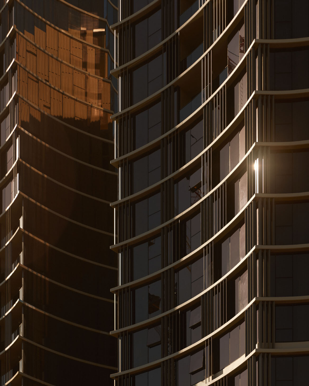 Above, the towers adopt fluid, undulating forms that respond to wind, light and views. Generous cantilevered balconies extend the living spaces outward, reinforcing the project’s emphasis on indoor-outdoor living. Despite their height, the buildings feel shaped by the same forces that define the coastline rather than imposed upon it.