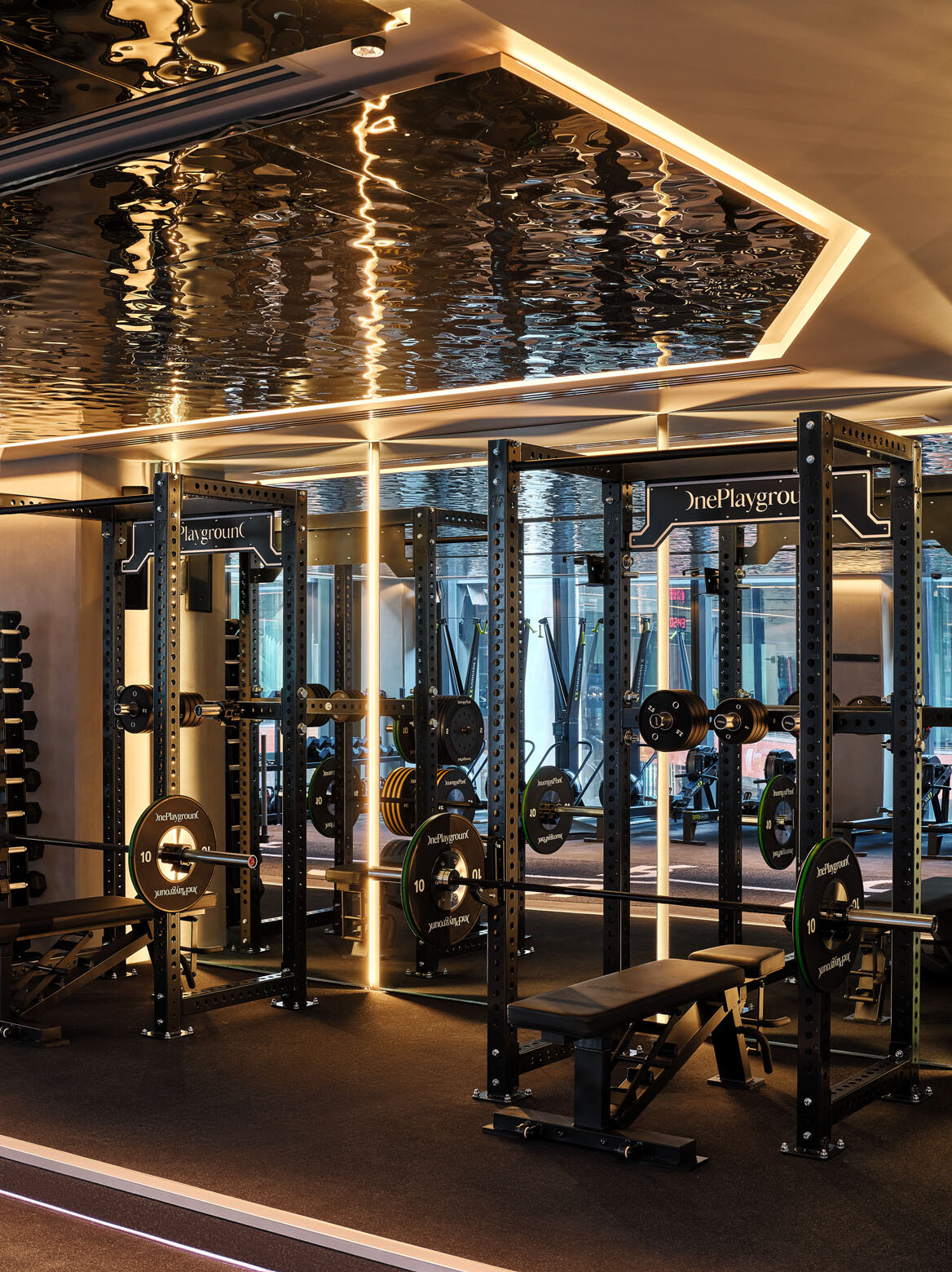 Mitchell adds that the design seeks to balance kinetic energy with contemplative calm. Strength zones are grounded and tactile, while reformer and recovery spaces soften into lighter, quieter atmospheres. Social lounges and rest areas stitch the journey together, reinforcing One Playground’s emphasis on community as part of wellbeing.